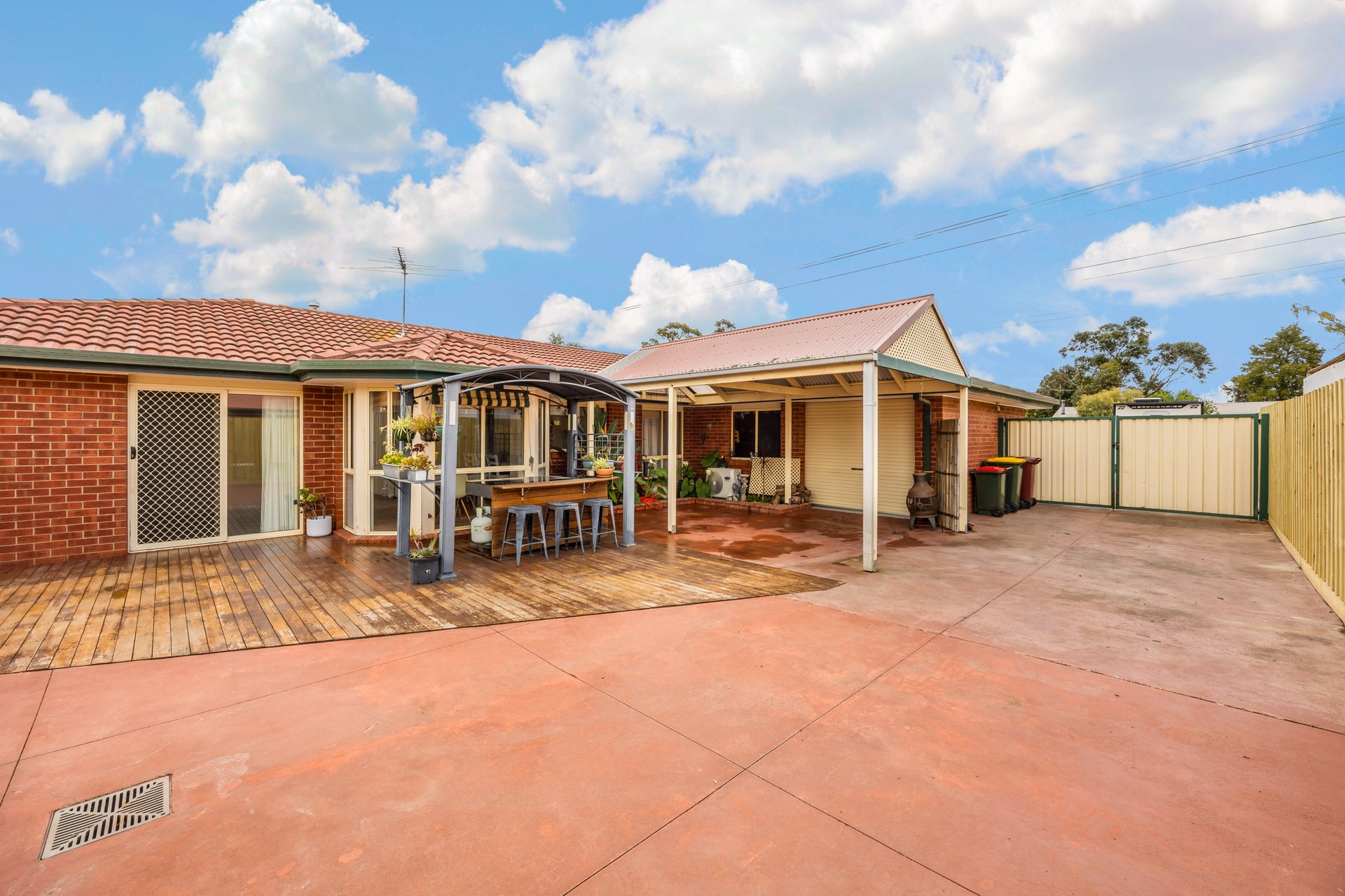 - Securely gated side driveway