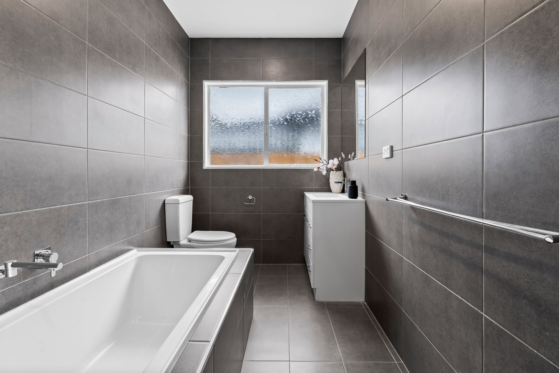 Accommodation includes three sizable bedrooms, all fitted with built in robes. The home features two well appointed bathrooms. The main bathroom includes a shower, bath, toilet and vanity with floor to ceiling tiling, while the second bathroom doubles as a functional laundry space and includes a walk-in linen cupboard, separate toilet, shower and double sink.