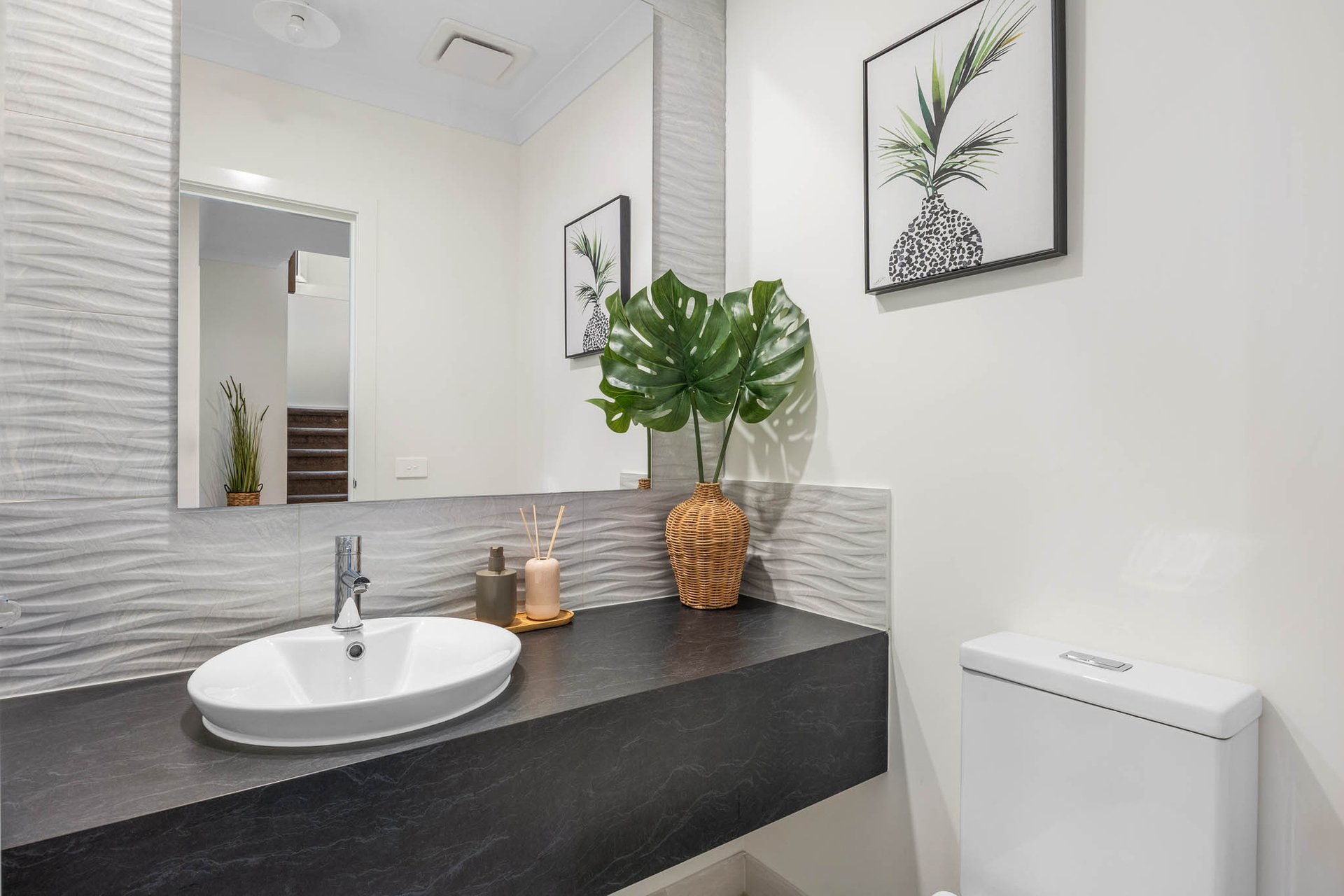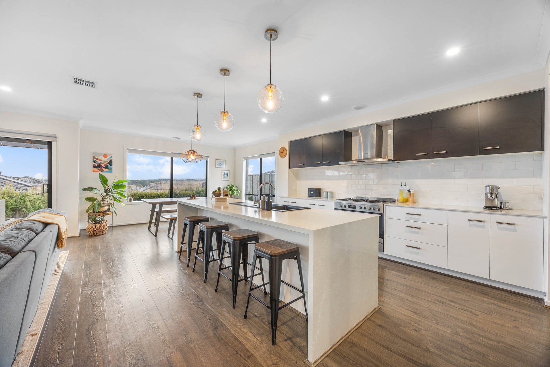 A welcoming front deck portico introduces wide engineered flooring that flows through light-filled interiors, balancing generous proportions with refined design. The lower level unfolds with a lounge, private study, and stylish powder room, before extending to a spacious open-plan domain.