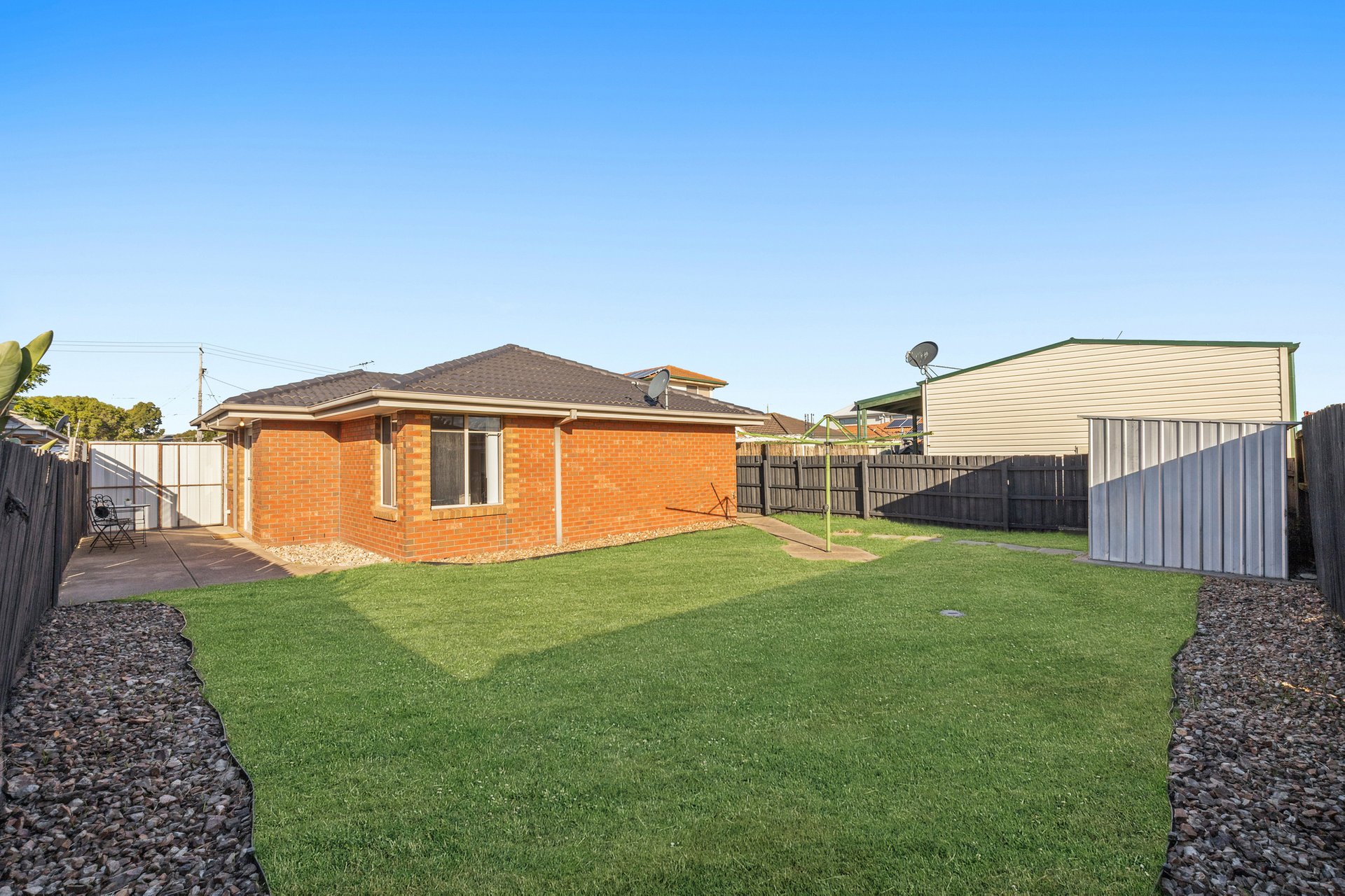 A full-sized laundry with direct backyard access enhances functionality, while the expansive rear yard offers plenty of space to relax, entertain or further enhance. Complete with a storage shed, the property also features ducted gas heating, carpets in the bedrooms, blinds throughout and ample off-street parking.