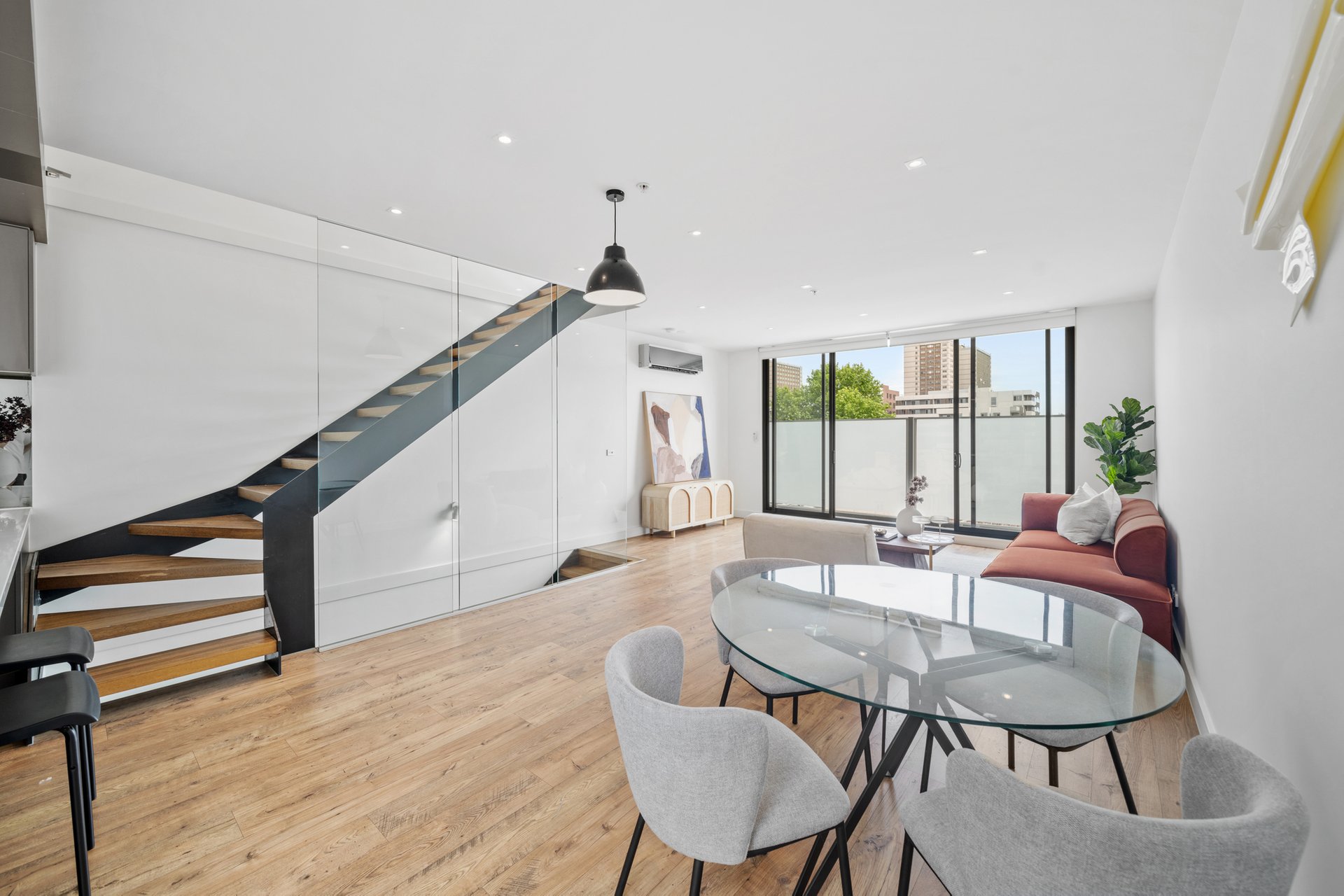 Additional features include internal glass balustrades, a feature staircase, plentiful internal storage and allocated basement parking. The rooftop terrace offers a spacious entertaining area with sweeping city views. Enjoy a lifestyle just moments from the MCG and Melbourne’s premier sporting precinct, the Yarra River Trail, Nicholson Street Abbotsford and its vibrant café scene, plus an array of local markets, shopping and transport options.