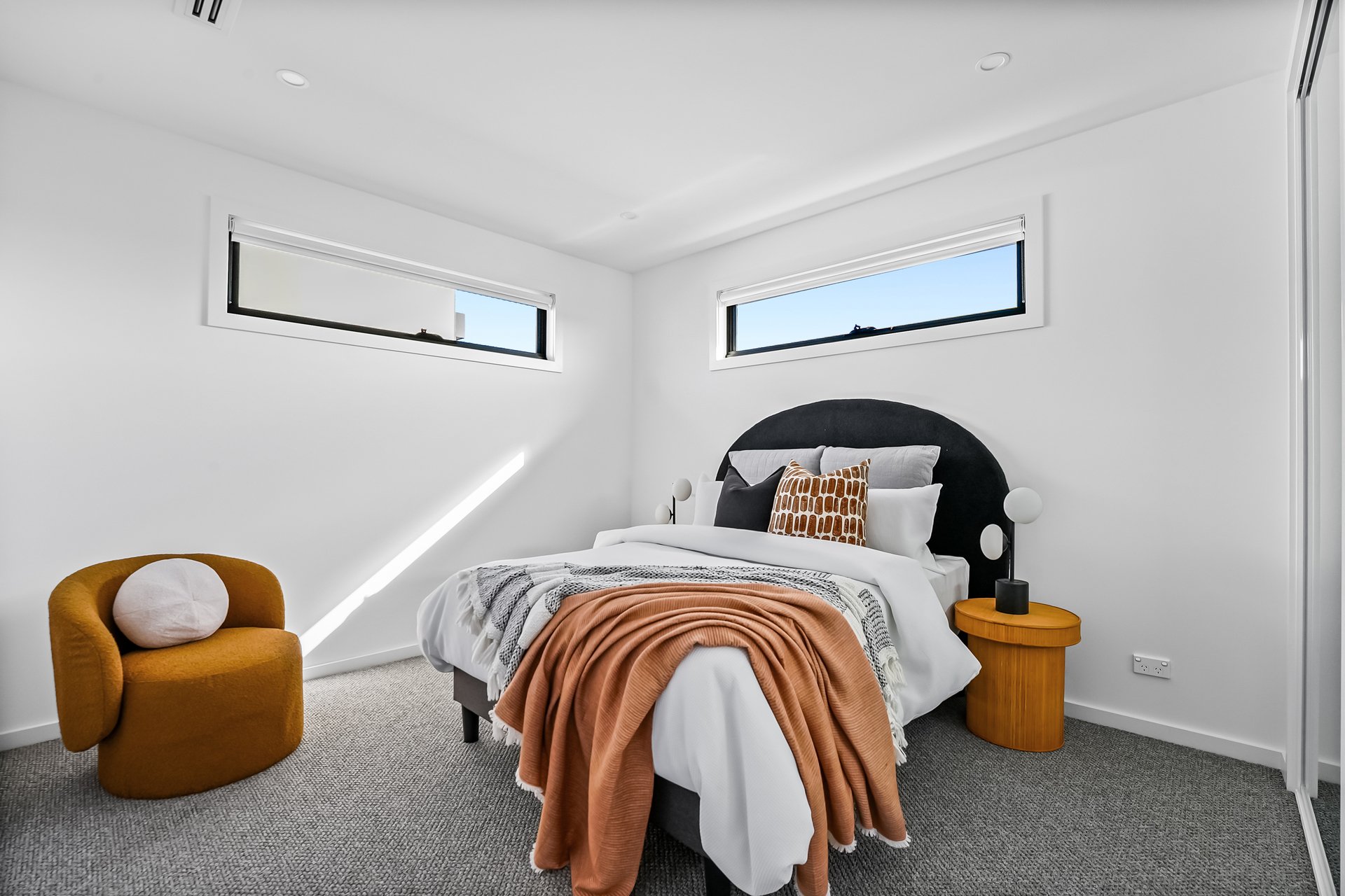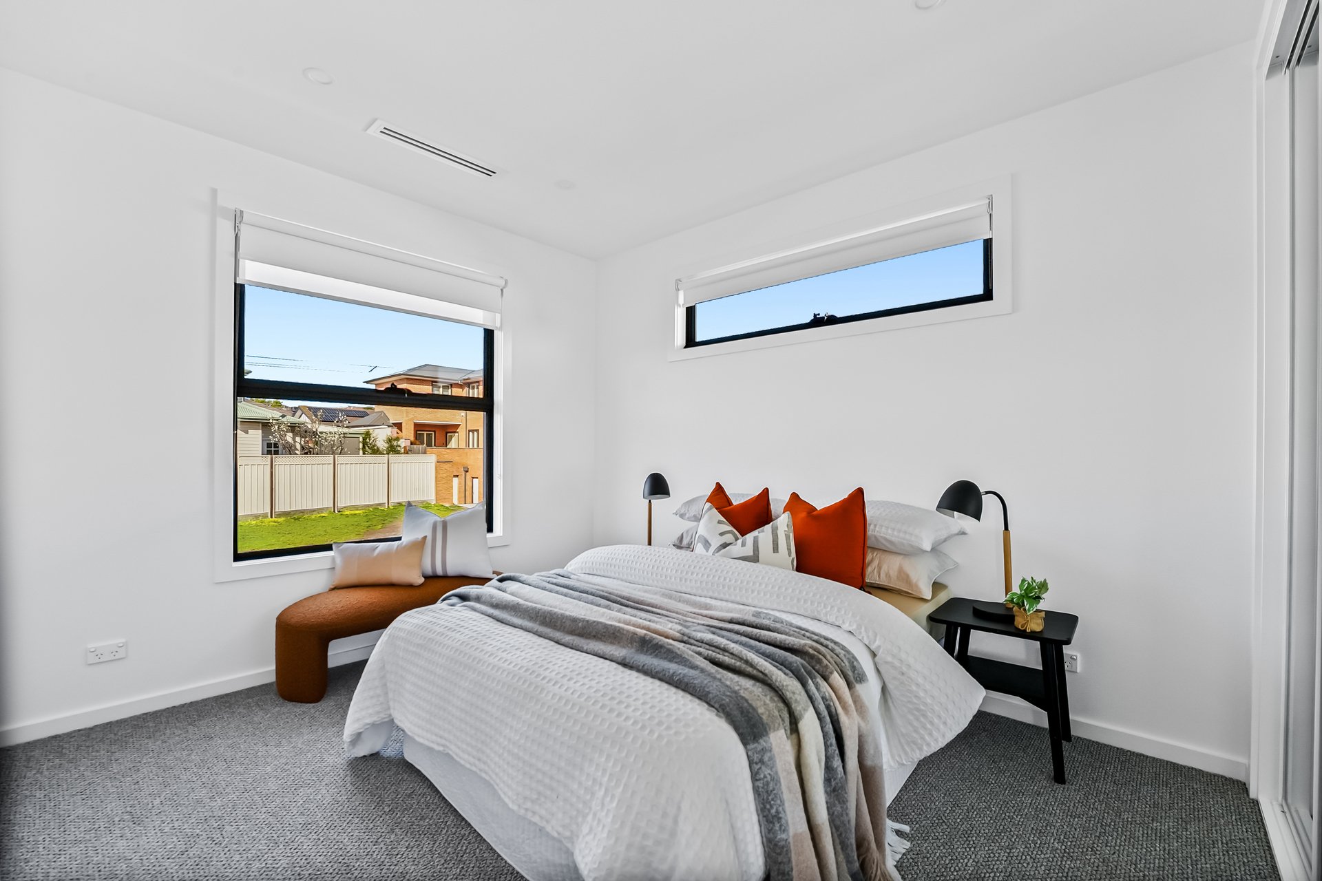 Accommodation includes a ground-floor master bedroom with walk-in robe and ensuite, while upstairs offers three further bedrooms (all with built-in robes) serviced by a stylish central bathroom. A ground-floor powder room, full-size laundry and secure parking for two cars - a lock-up garage (internally wired for EV charging) with internal access plus an additional car space - complete the practical design.