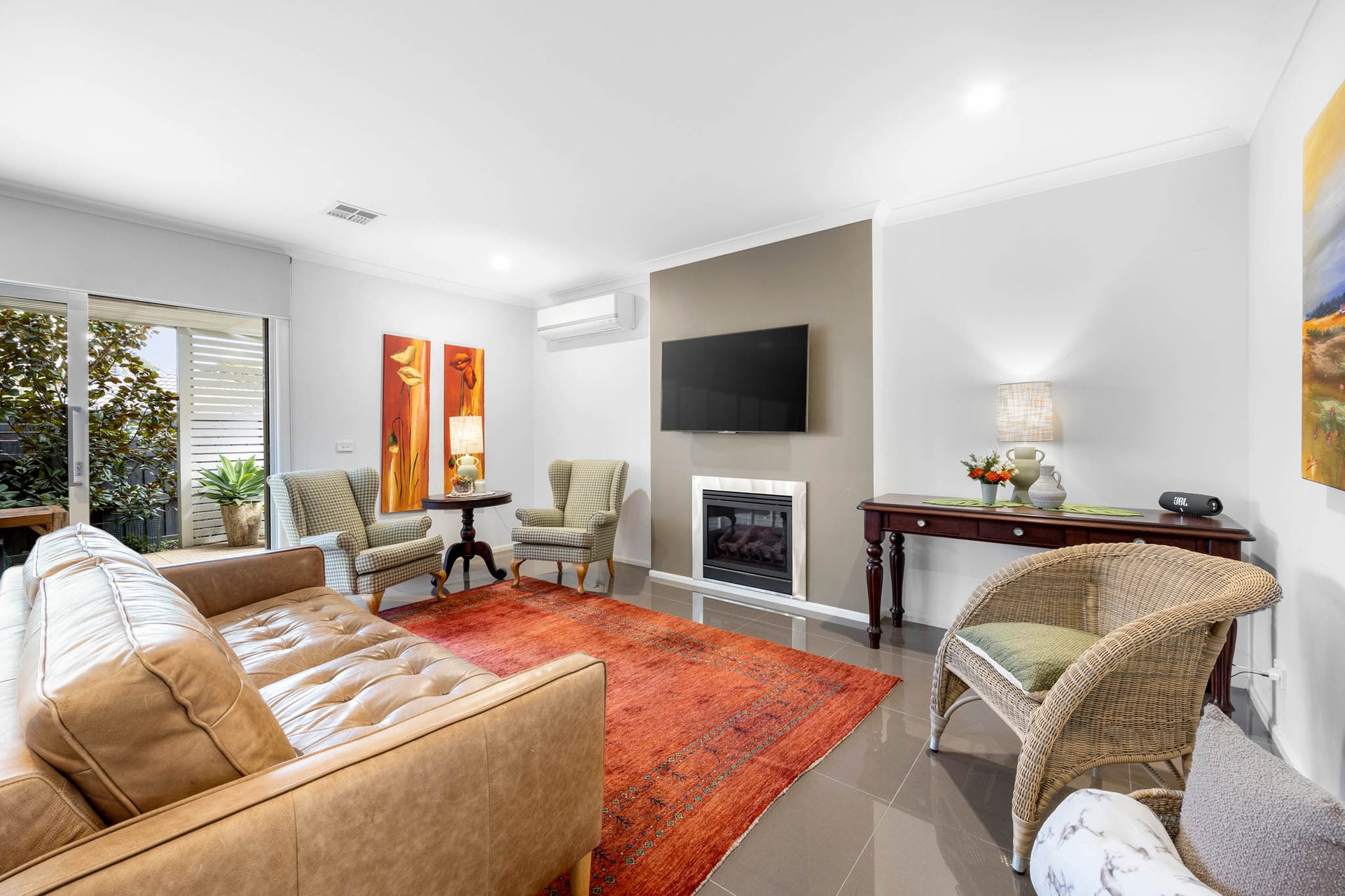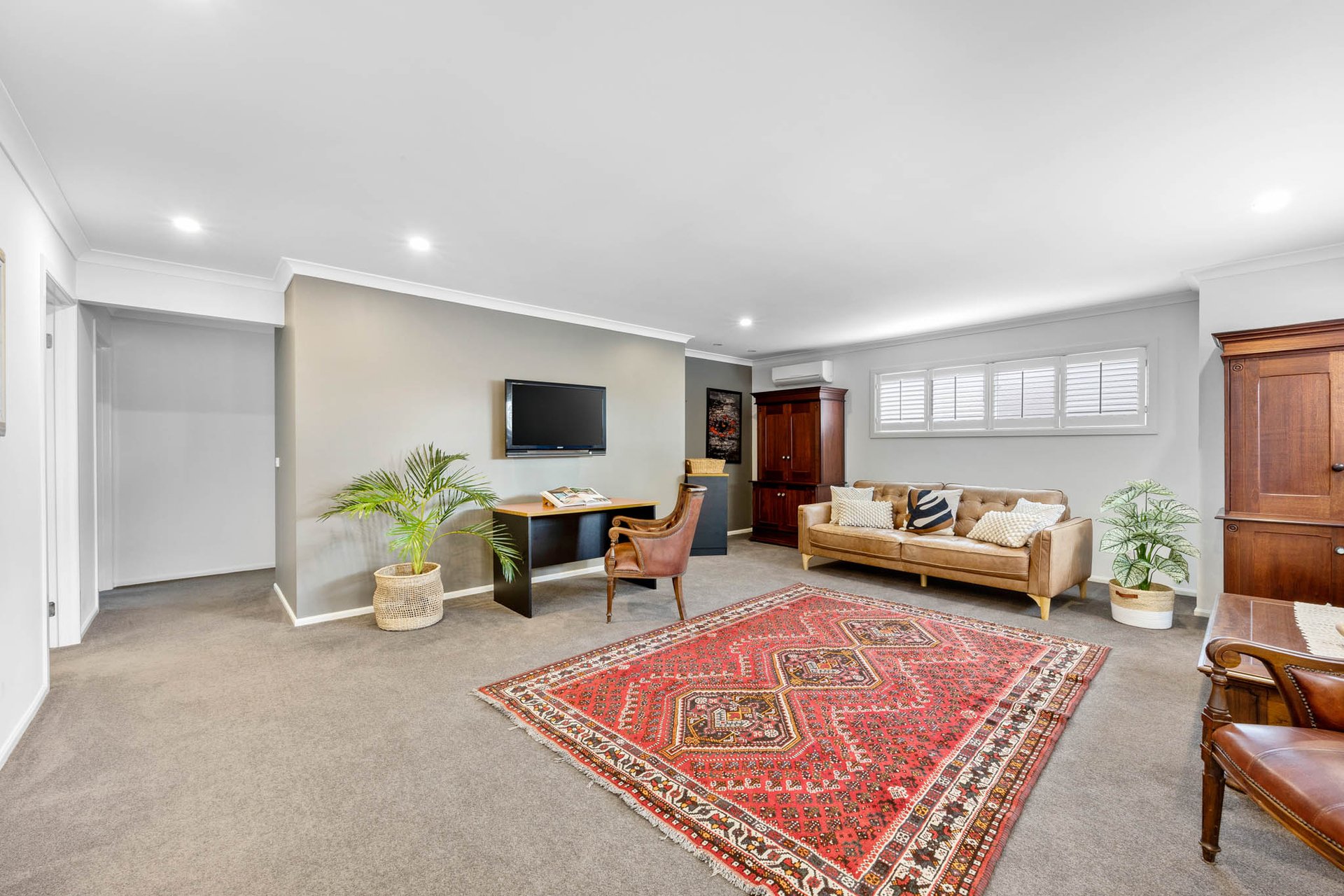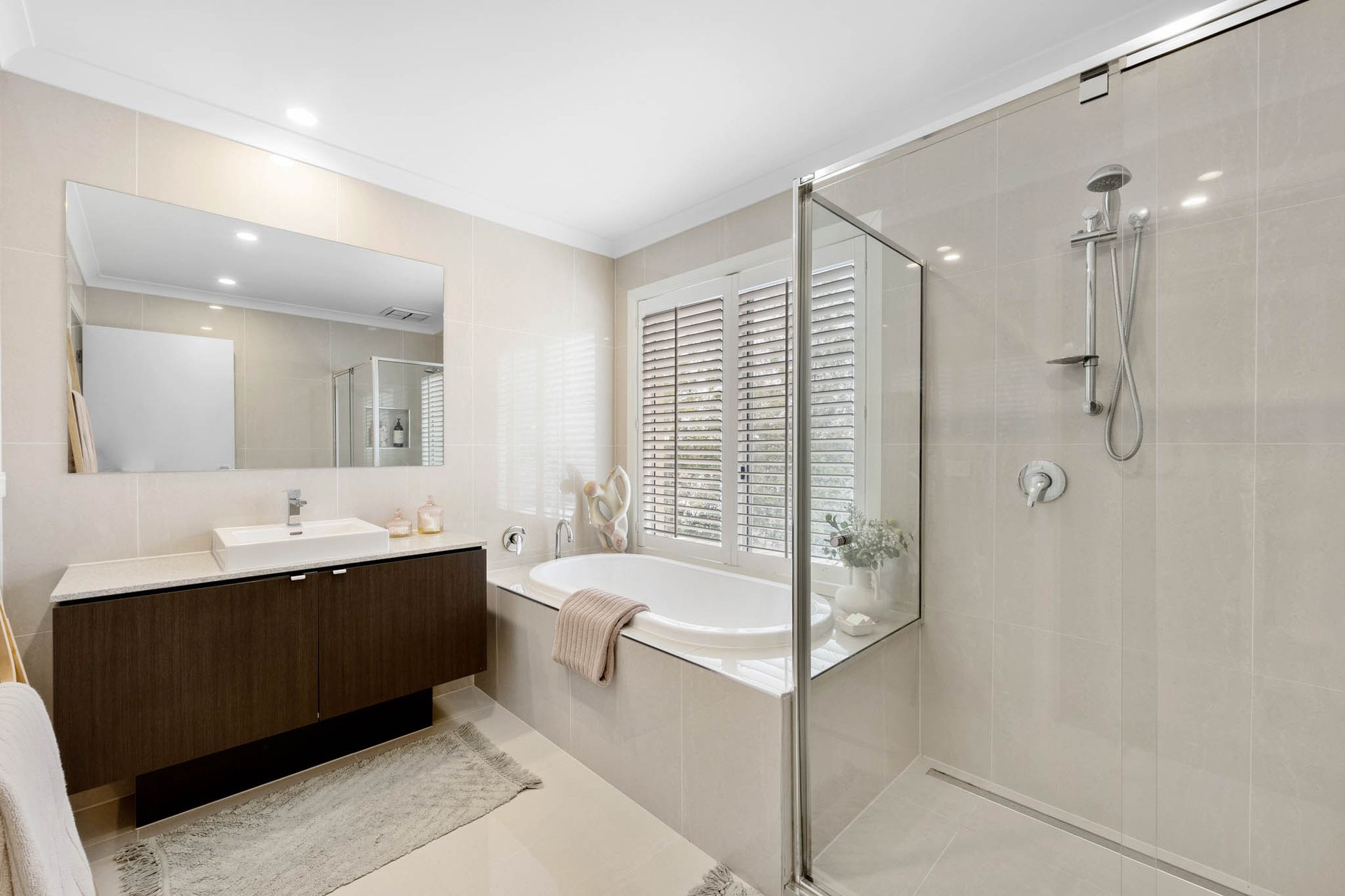 Framed by white slatted surrounds, the alfresco is perfectly positioned for year-round enjoyment overlooking the stunning solar-heated, salt-chlorinated pool with frameless glass fencing, while the landscaped garden provides a manicured, low-maintenance backdrop to relaxed entertaining and daily life.