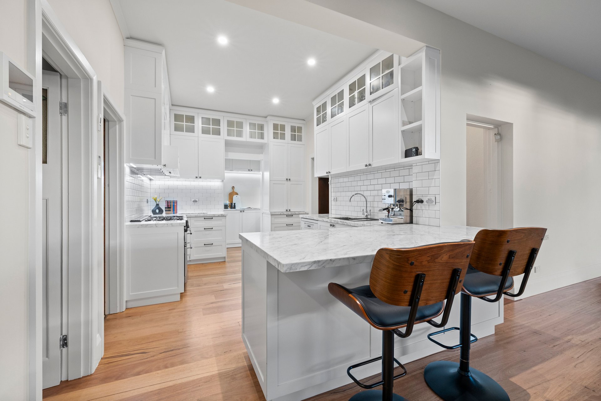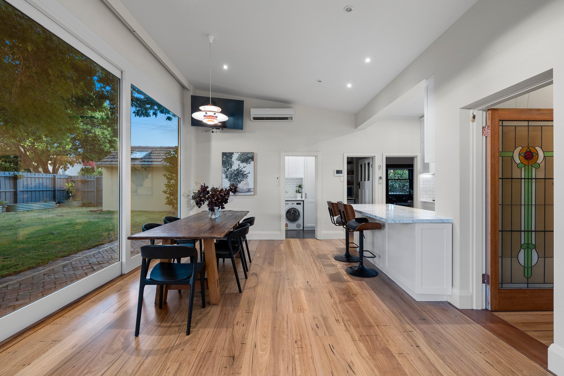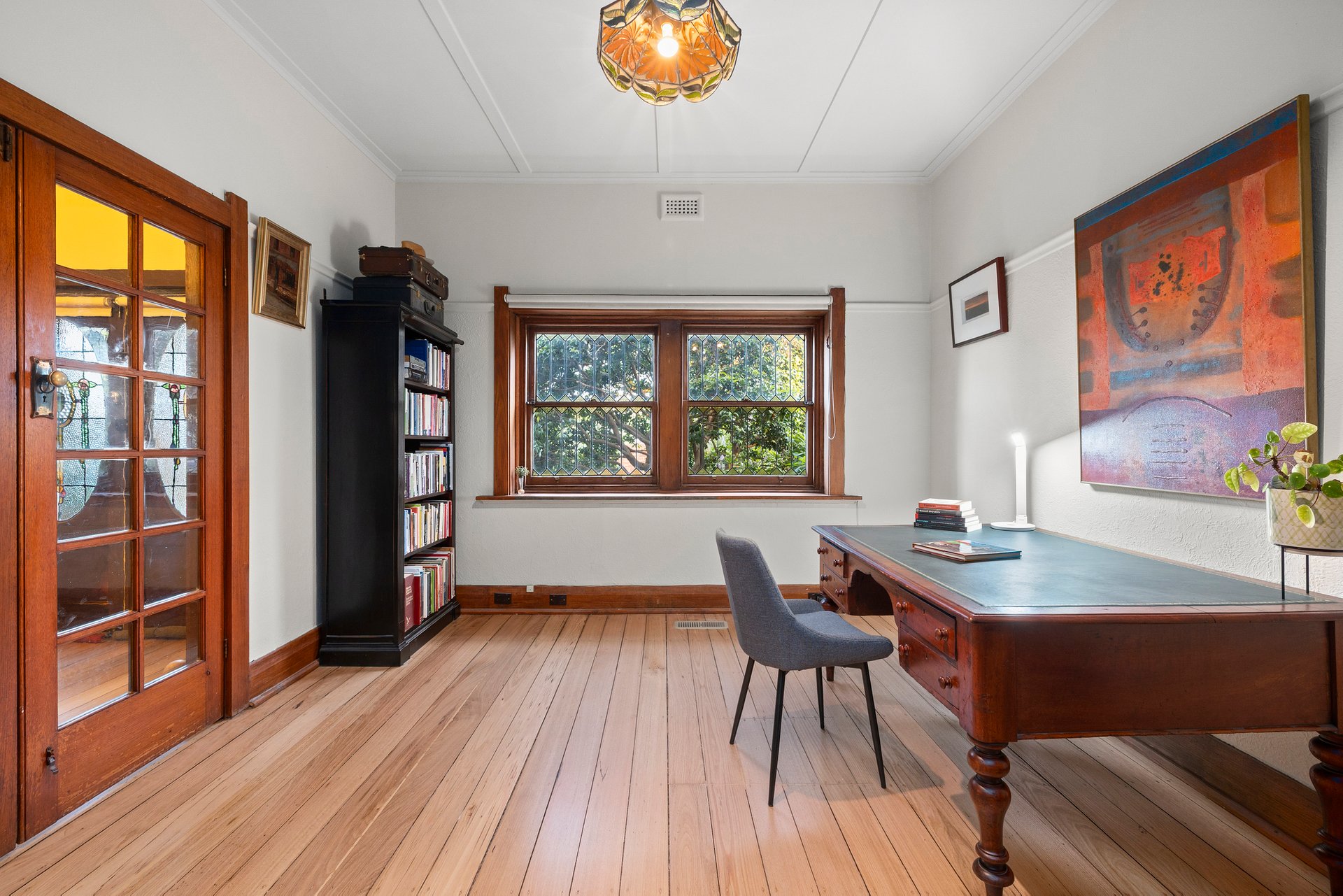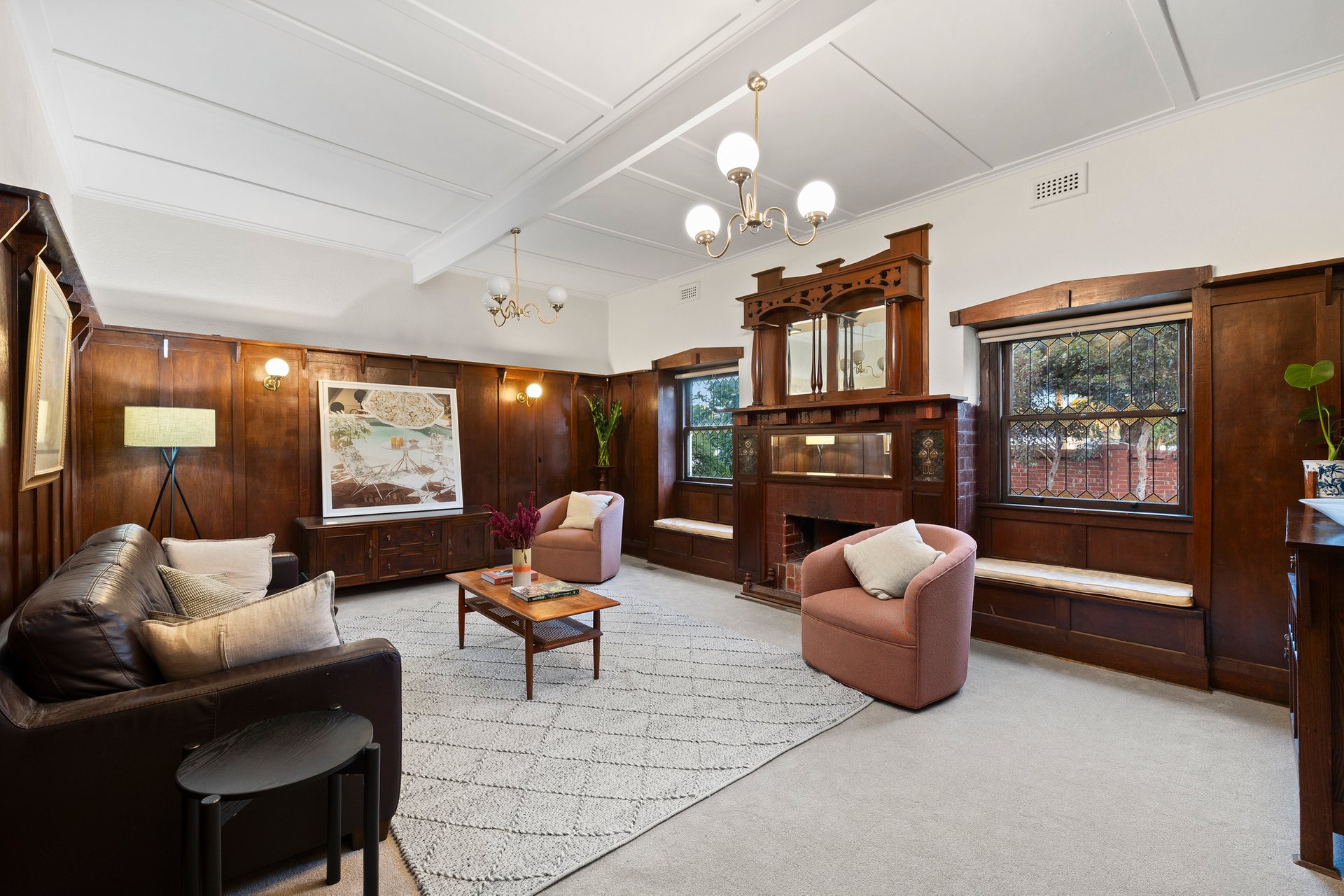 Originally designed for the first principal of Murrumbeena Primary School c1916, the home’s captivating exterior opens to warm and welcoming interiors where classic proportions, high ceilings, ornate fireplaces and rich timber accents sit harmoniously alongside the requisite comforts and conveniences expected by today’s families.
