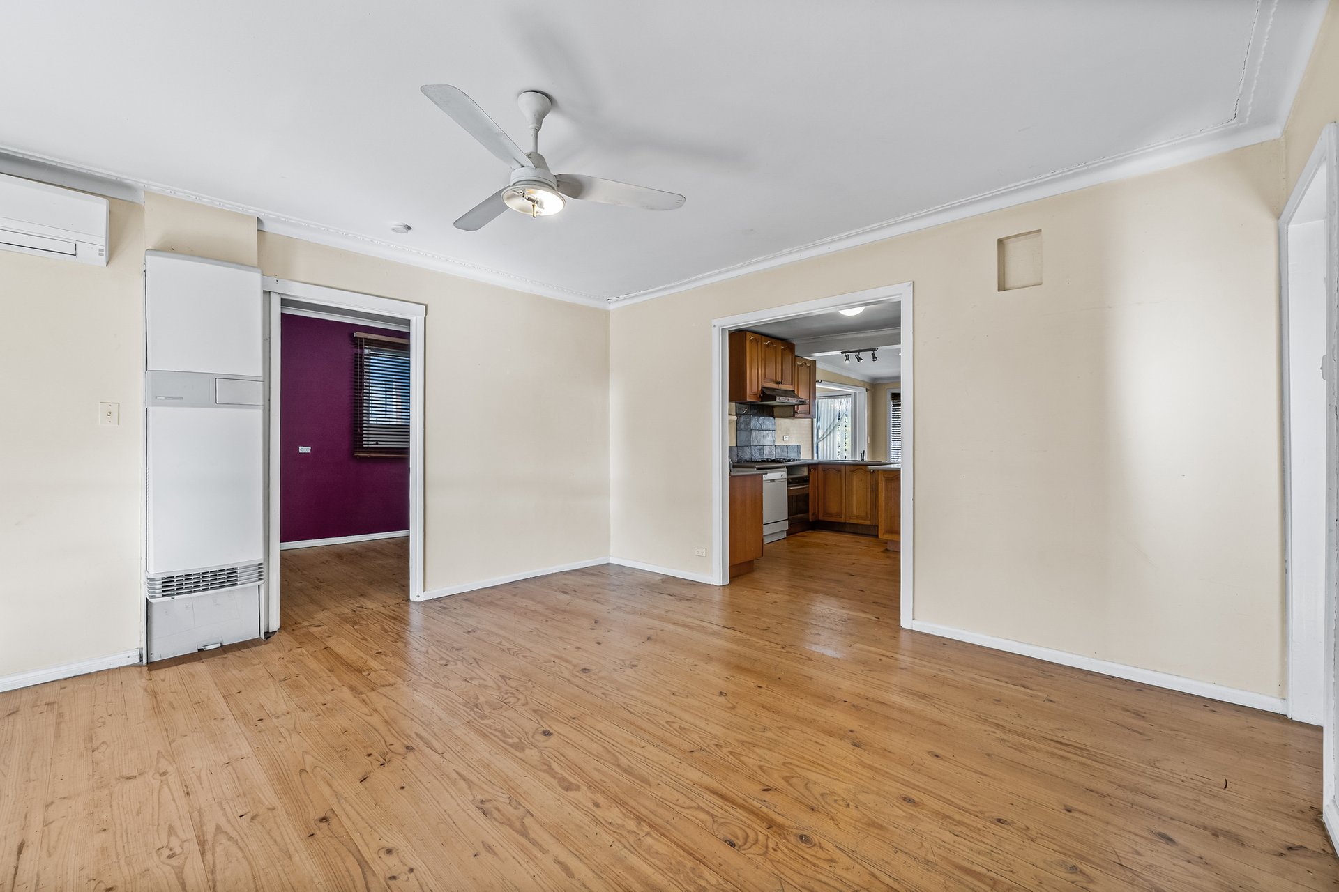 Step inside to a sunlit front living area, where large windows capture natural light and a split-system air conditioner ensures year-round comfort.