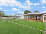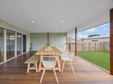A striking wall of glass sliding doors with retractable flyscreens flows to an expansive covered outdoor entertaining area with rich timber decking and exterior downlights. The lawned rear yard also features a 2nd covered entertaining zone and a tumbled-brick firepit area.