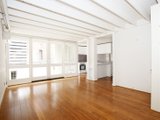 Downstairs features a light-filled open plan living and dining area with polished floorboards, flowing seamlessly onto a private balcony, perfect for relaxing or entertaining. The modern kitchen is well-appointed with ample cupboard space.