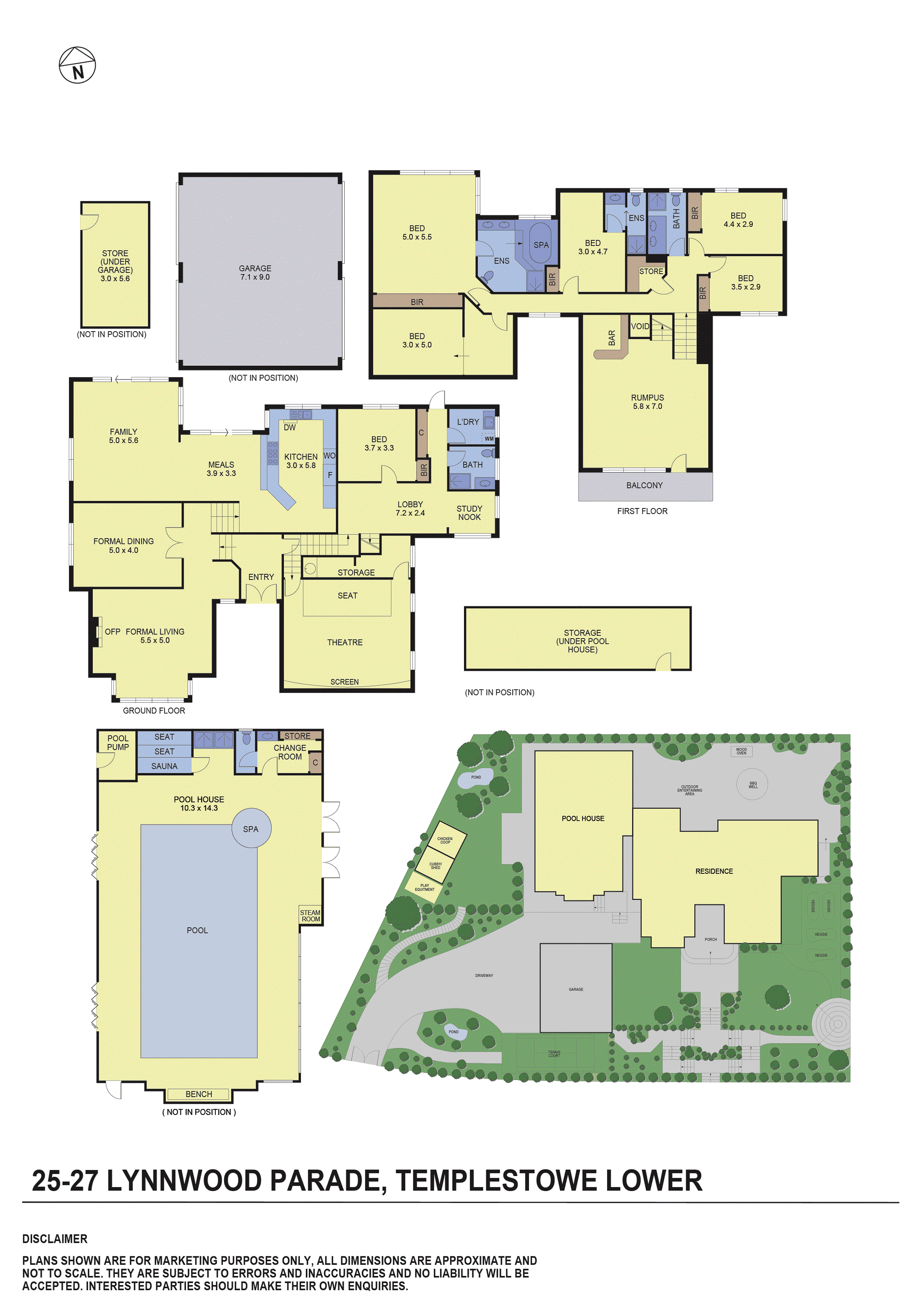 Designed for exceptional flexibility, the expansive layout showcases five formal and informal living zones, four generous bedrooms, two additional study/bedroom options, and five luxurious bathrooms including two ensuites.