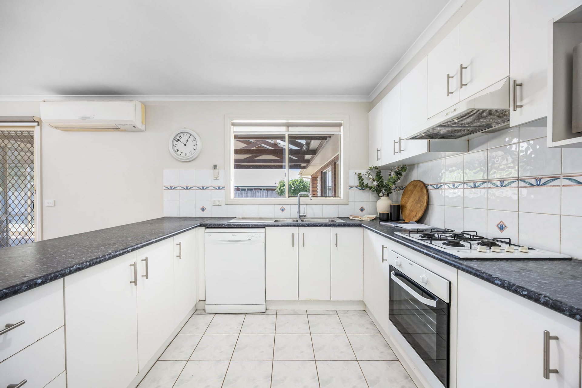 A welcoming lounge introduces the interior, unfolding to a highly practical kitchen conceived as the everyday hub, providing the ultimate comfort and style with reverse cycle air conditioning, excellent bench space, white cabinetry, a Chef oven and a Dishlex dishwasher.
