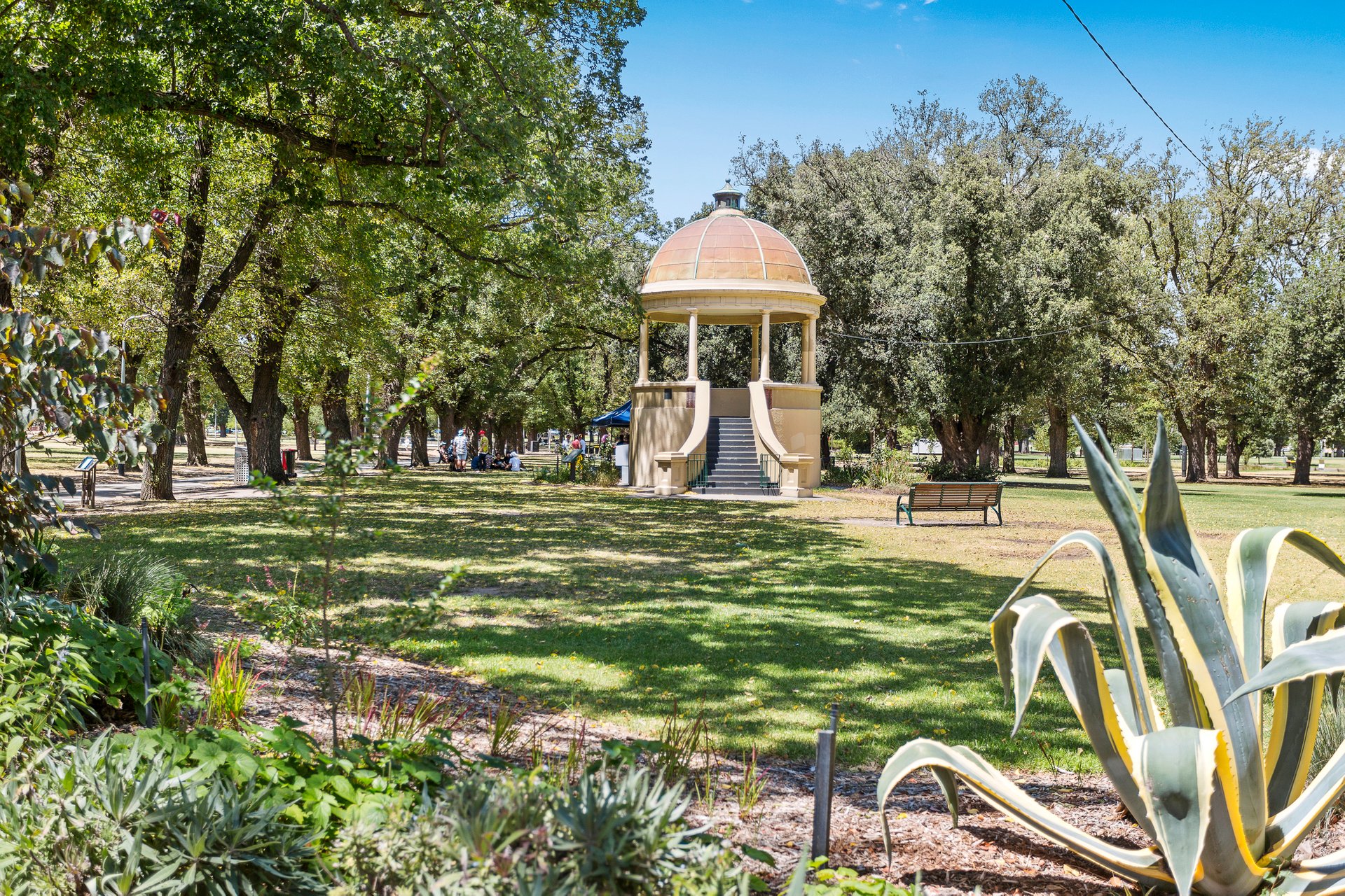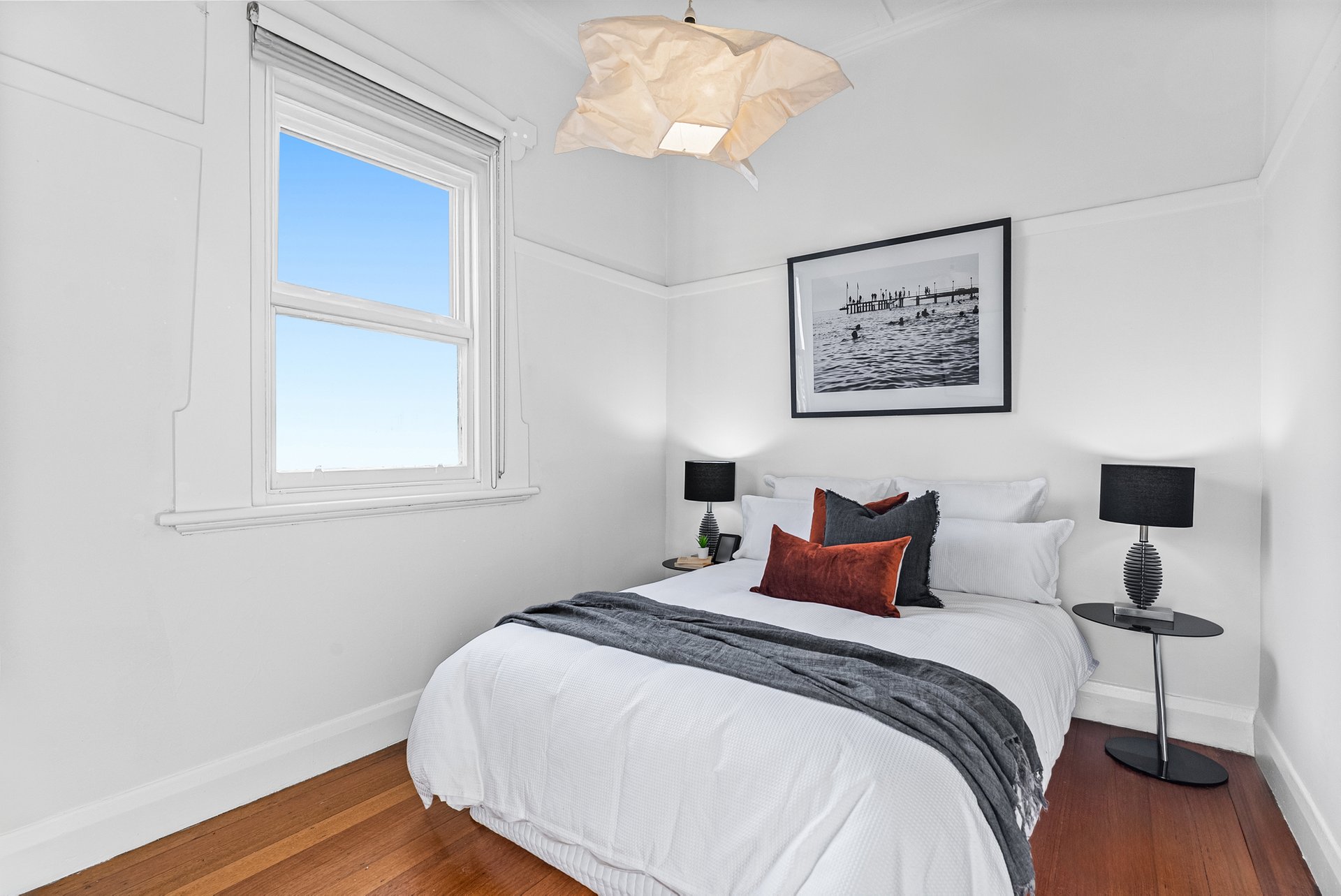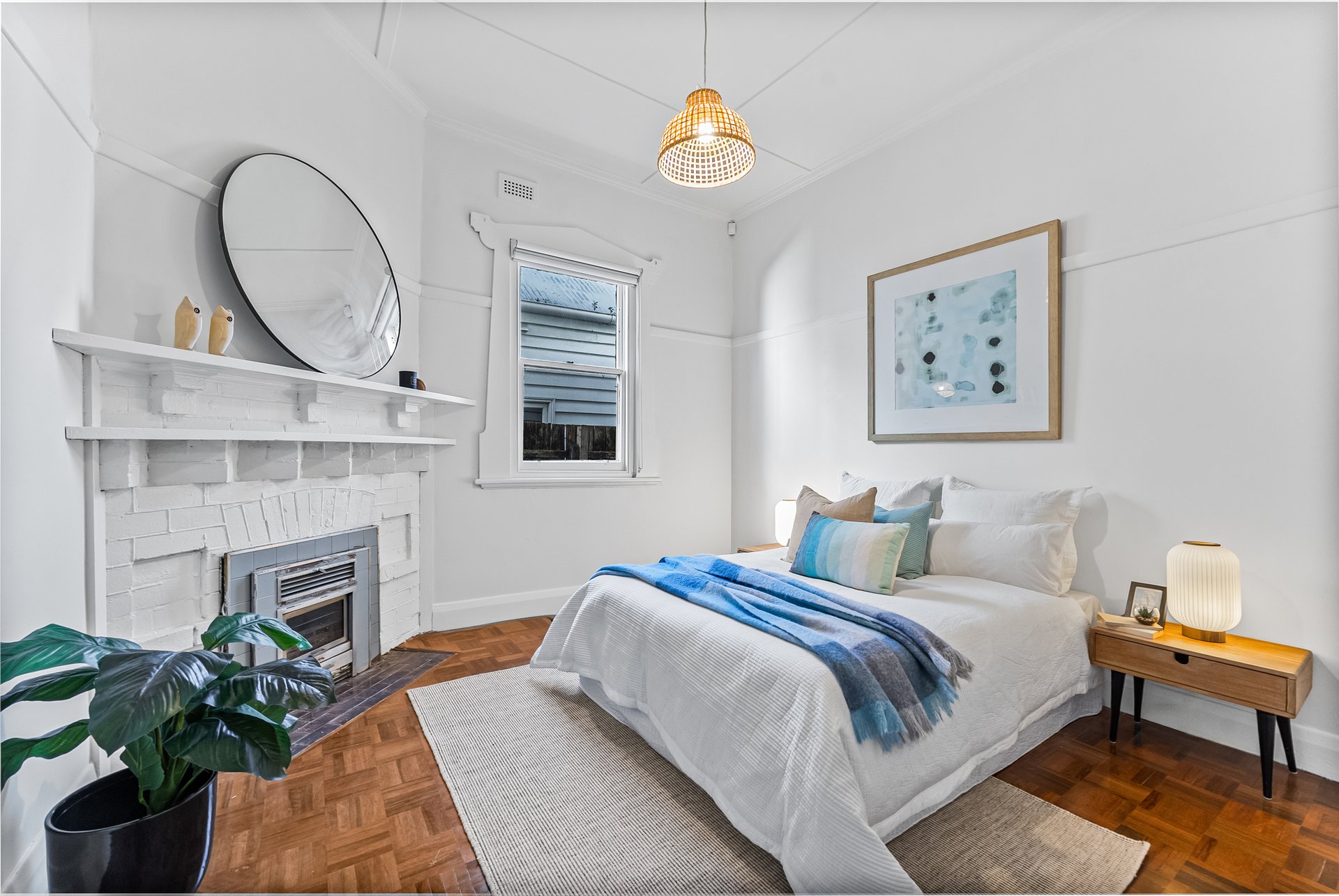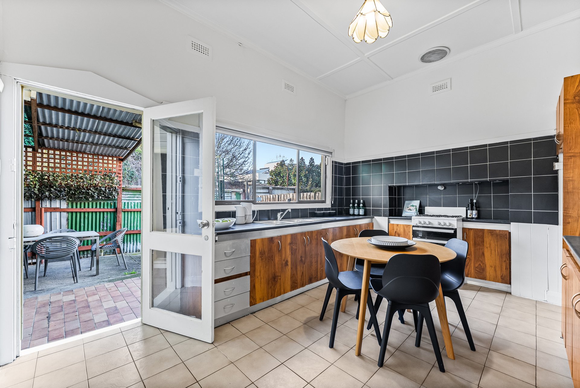 Behind a charming period façade, the home reveals a classic floorplan enriched by high ceilings, intricate ceiling roses, and polished timber floors. A grand arched hallway leads to three generous bedrooms, each filled with natural light and leafy outlooks, a generous living room, and a central updated bathroom.