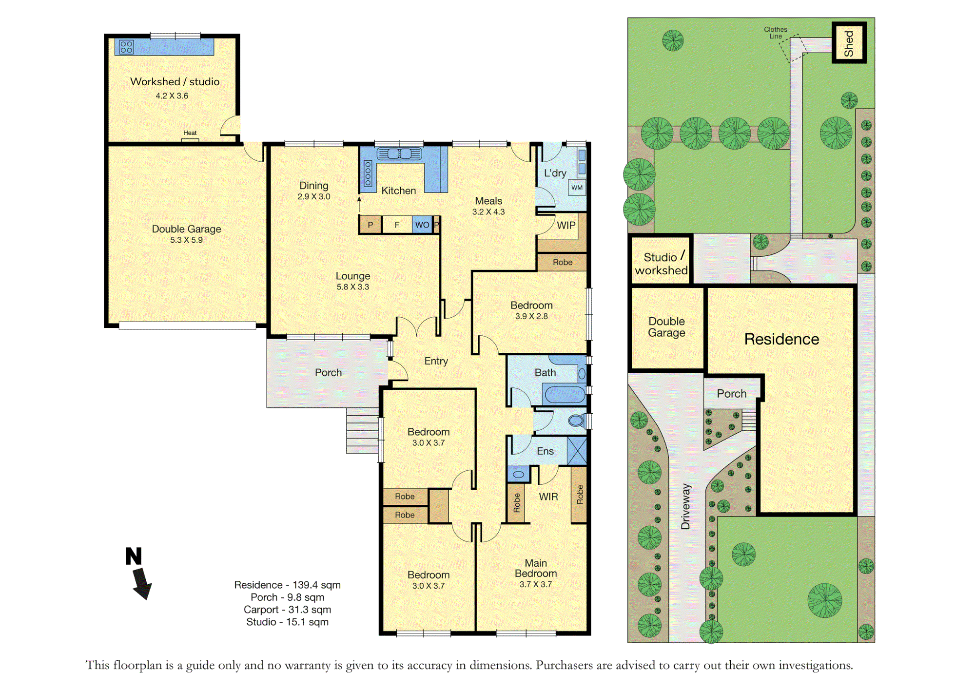 A flexible studio, attached at the rear, makes a practical home office or workshop. The rear patio and garden set the scene for alfresco dining or kids at play, complemented by a large north-facing front garden that brings warmth and greenery to the home’s façade. Additional features include ducted heating and a double garage.
