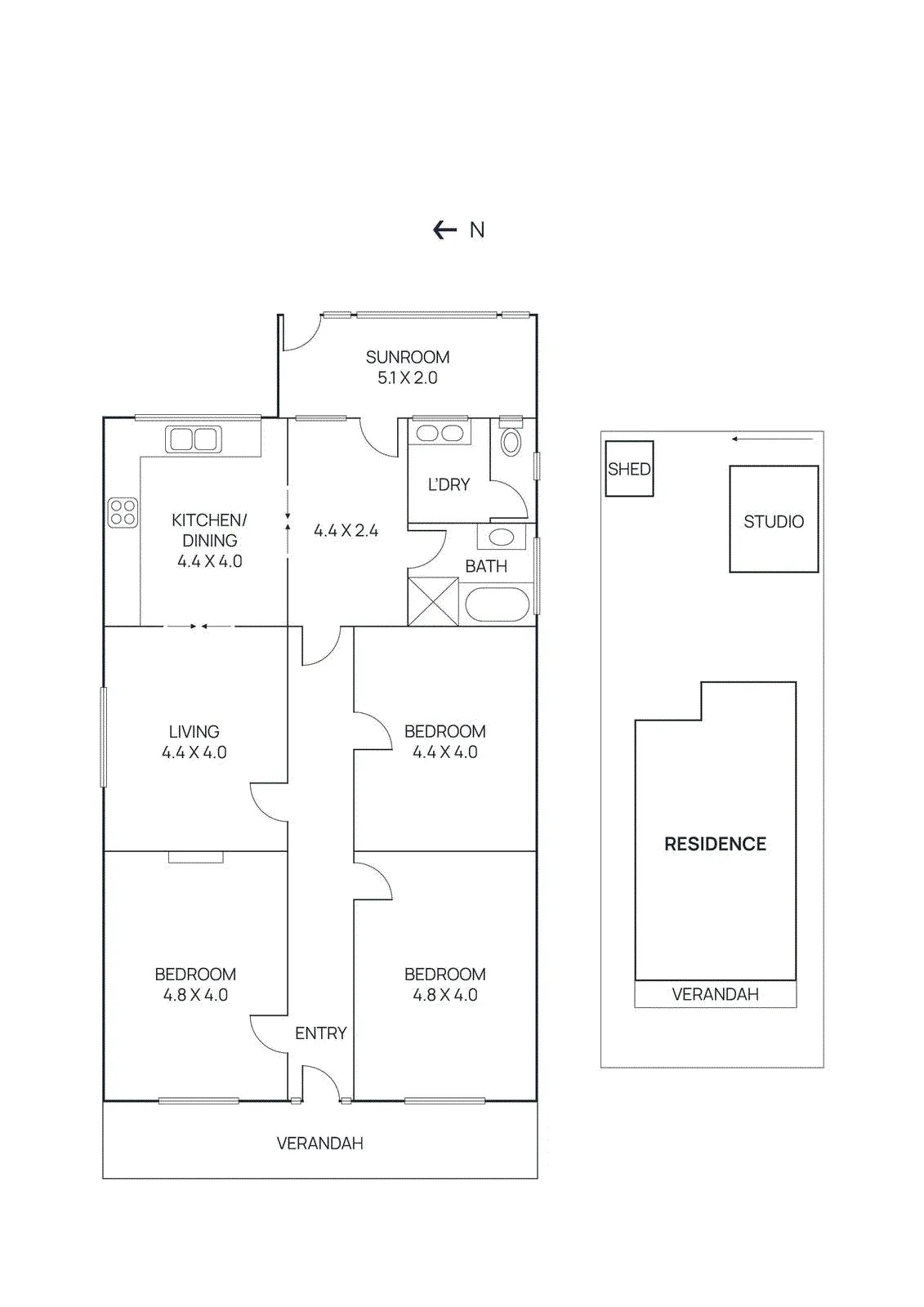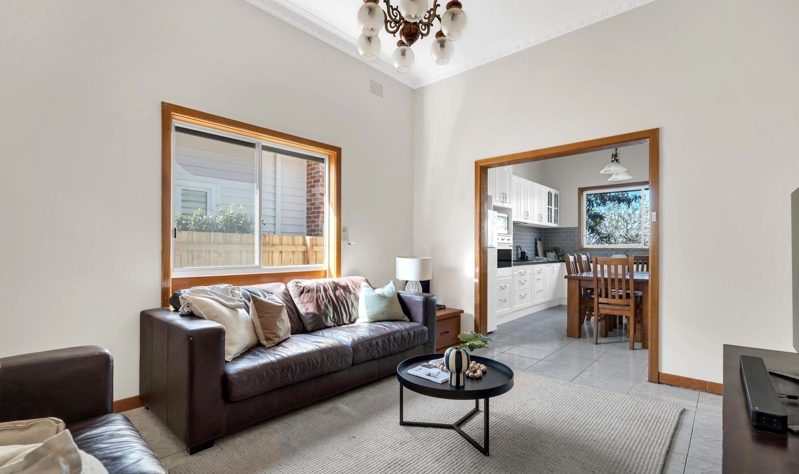 With proportions generous and natural light abundant, a function-minded floor plan sees three oversized bedrooms accompanied by a tidy bathroom with a bath and separate WC. A large living area and open meals zone flank a kitchen with durable stone benches, upscale Smeg and Miele appliances, and extensive storage, while a relaxing sunroom proves a wonderful space to lounge with a book on a sun-splashed afternoon. Making optimal use of rear lane frontage, a separately accessed back studio is ideal as an artist’s retreat or home workspace. Augmented by 6000l water storage, security shutters, ducted heating, evaporative cooling full-size laundry, and ample street parking, it’s only steps to Pentridge and Sydney Road shopping, dining, and nightlife, acclaimed schools, Coburg Station, and trams bound for bustling Brunswick, major hospitals, leading universities, and the CBD.