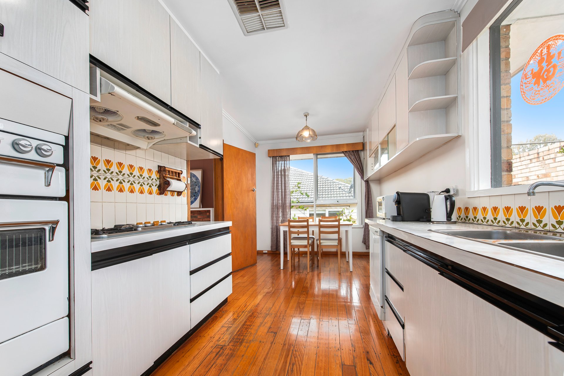 Step inside to discover a bright and spacious living area with a sought-after northerly aspect, sturdy hardwood floors, and year-round comfort provided by gas ducted heating and evaporative cooling. The home features spacious bedrooms, an updated family bathroom, and a galley-style kitchen that flows seamlessly into the adjoining family dining area—perfect for modern living. A separate laundry and spacious garage add convenience.