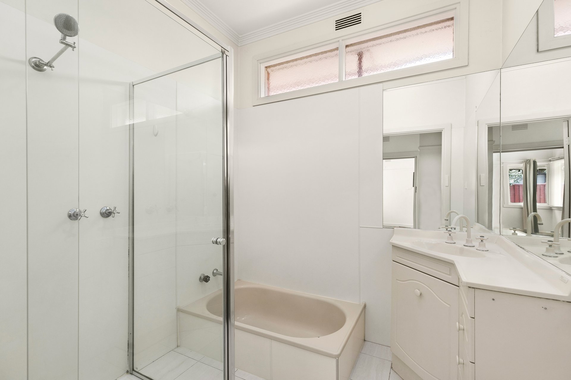 - Central bathroom with separate bath and shower
