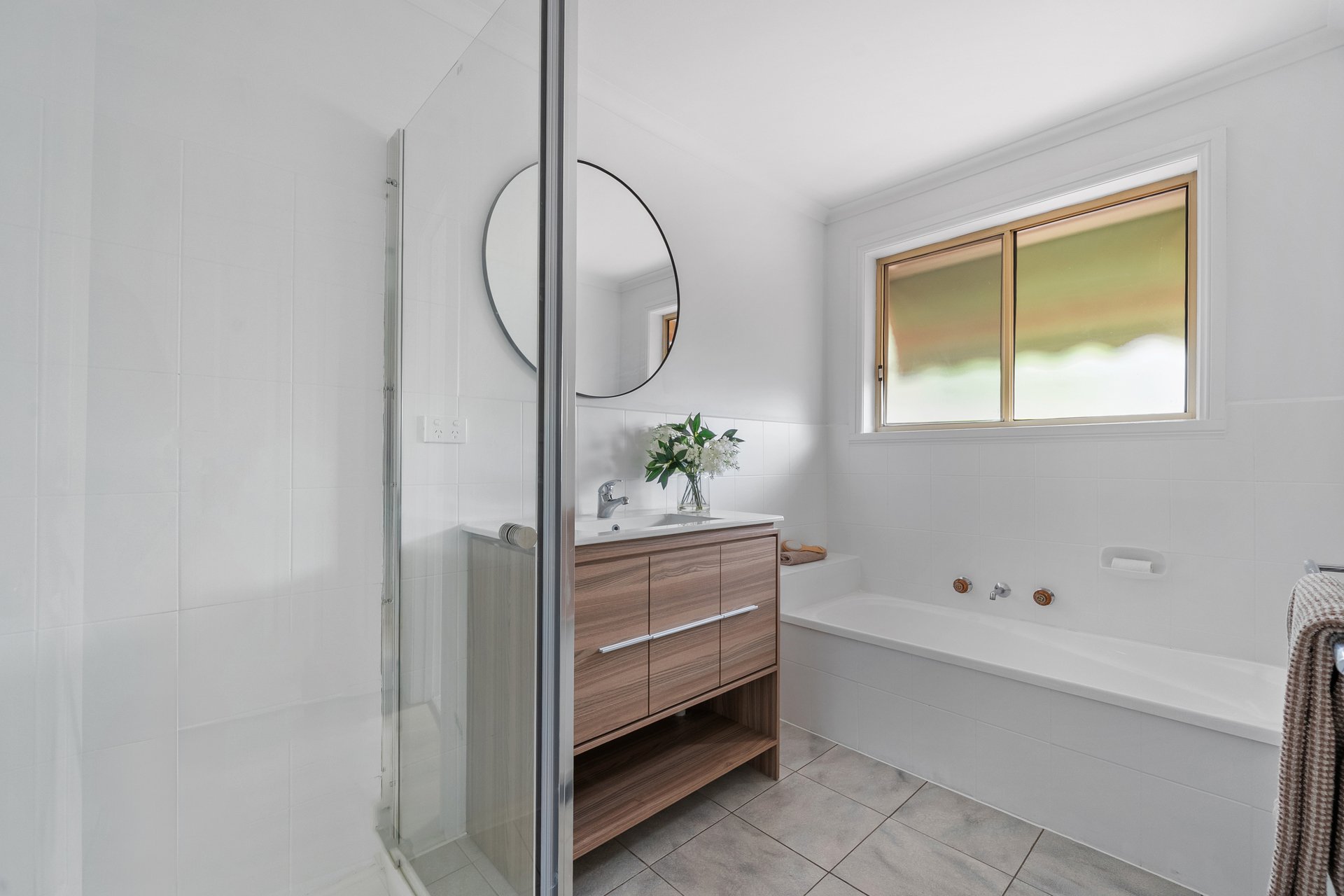 The master bedroom features its own ensuite and walk-in robe, while the additional bedrooms are fitted with mirrored built-in robes and serviced by a central bathroom, separate WC, and full laundry.