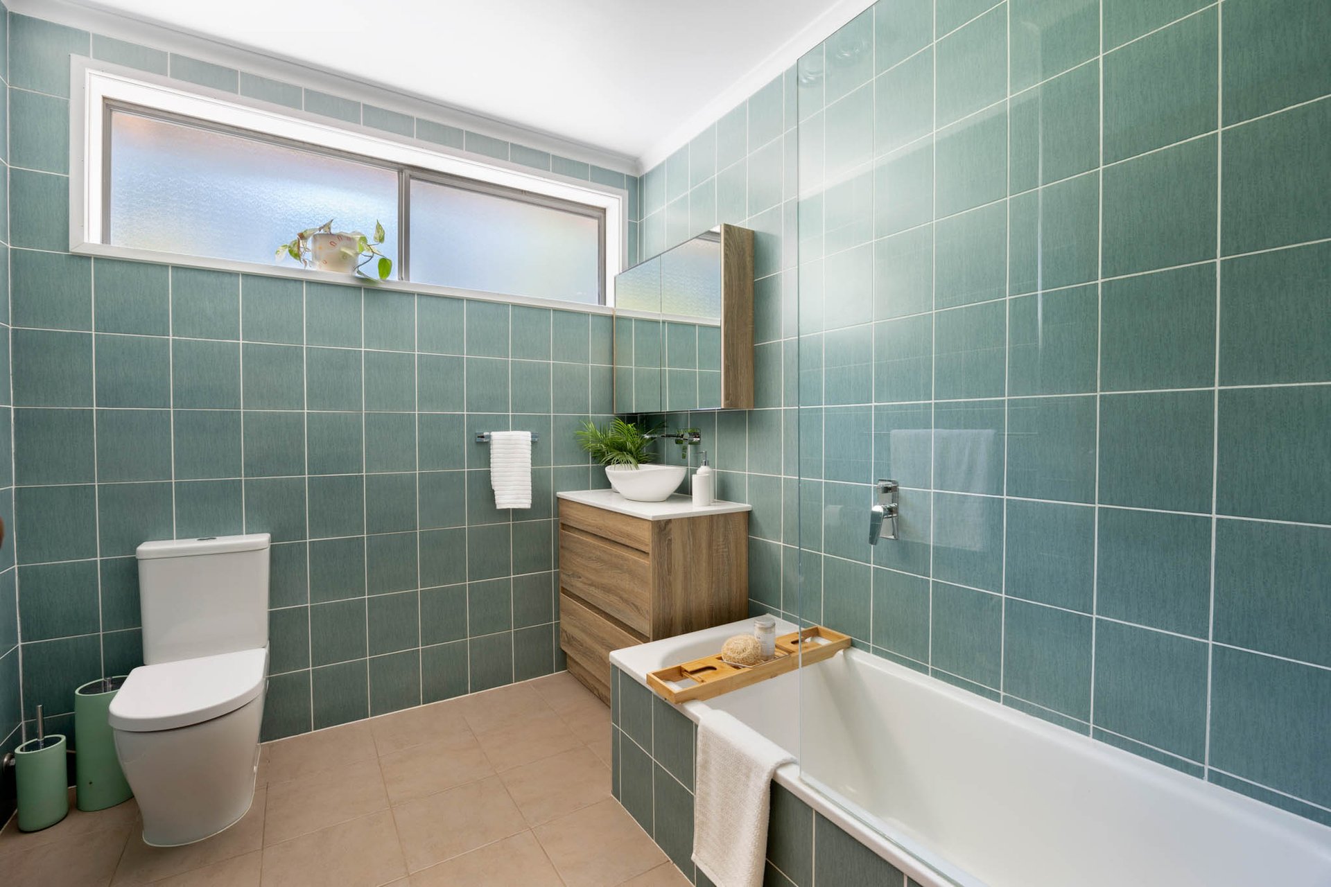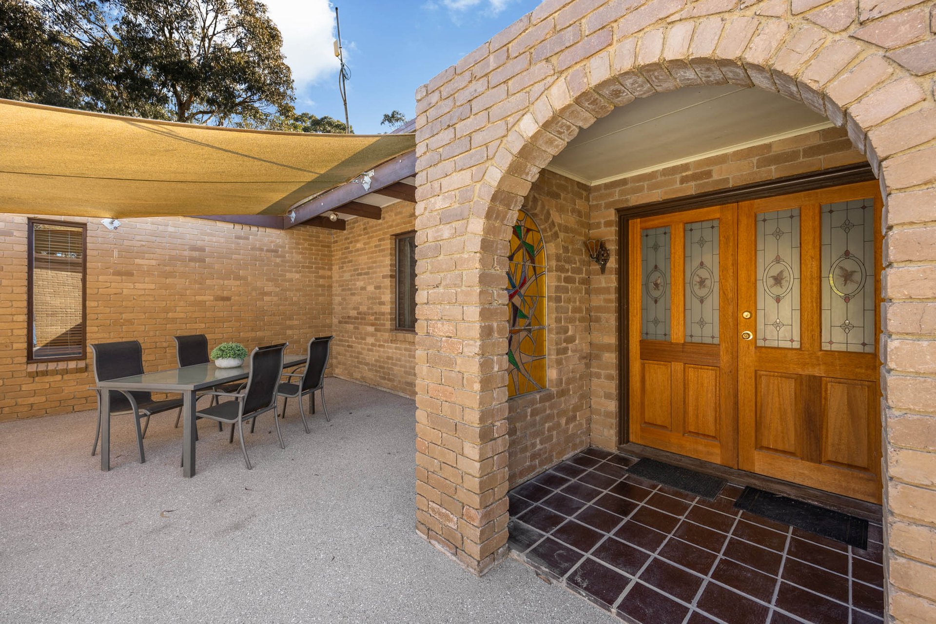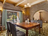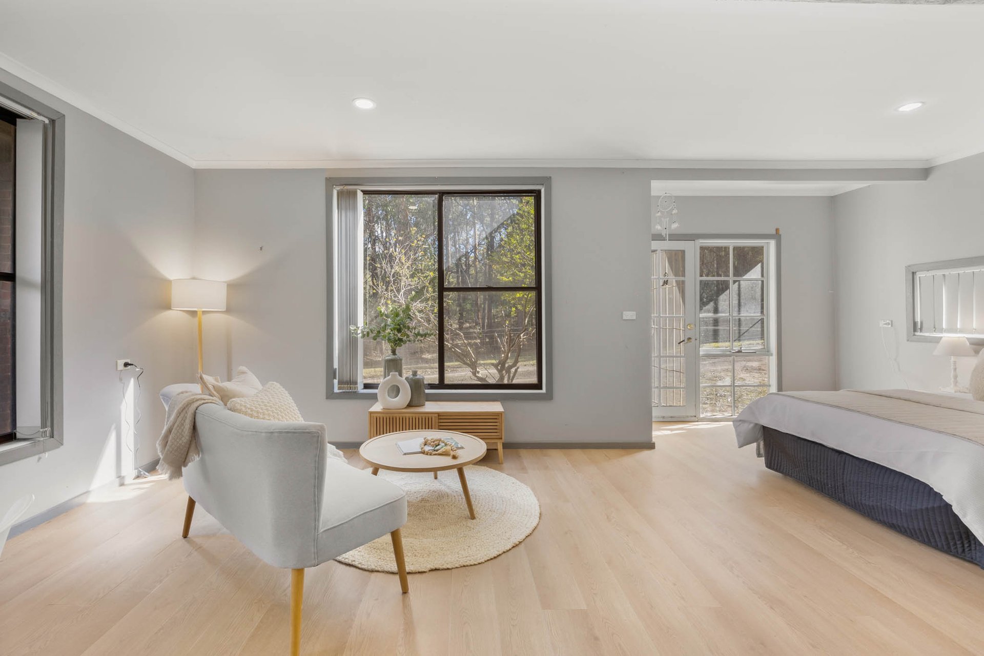 The kitchen is a masterpiece of rustic elegance, crowned by a striking copper rangehood above the 90cm Glem oven and stove. A large walk-in pantry and generous bench space make it as practical as it is beautiful. Five bedrooms provide generous accommodation, with the main bedroom spacious and fitted with built-in robes, and each additional room offering robes and views across the bushland. Two bathrooms serve the home in style, both with stone benchtops and bowl sinks. The first features a shower over bath with a waterfall showerhead, while the second offers a sleek walk-in shower and toilet. A linen closet in the hallway, a large laundry with bench space and storage, and an additional separate toilet complete the main home with convenience. Outside, the house connects seamlessly to a fully fenced and paved backyard framed by mature citrus trees, a tranquil water feature and a covered entertaining area perfect for gatherings large or small. Parking is abundant with a double carport, a further three-car carport adjoining the meals area, and additional storage options nearby.