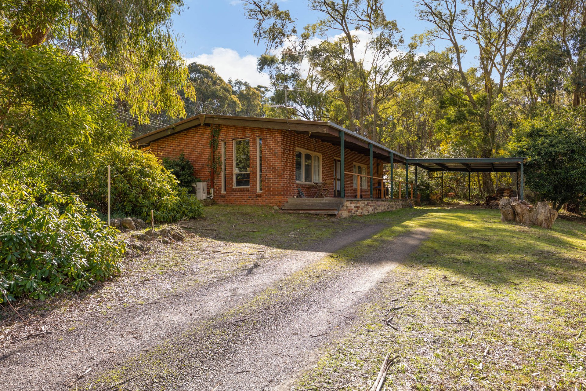 The cottage feels like its own retreat, defined by soaring twelve-foot raked ceilings and a light-filled design. It includes two bedrooms with built-in robes, a spacious living or office area, a full kitchen with excellent storage, a bathroom with bath, shower, vanity and separate toilet, and a laundry with additional cabinetry. A long undercover deck stretches along the exterior, offering the perfect place to sit and take in the views. A carport, a brick BBQ and even a nearby chook house add to the self-sufficient appeal of this delightful home.
