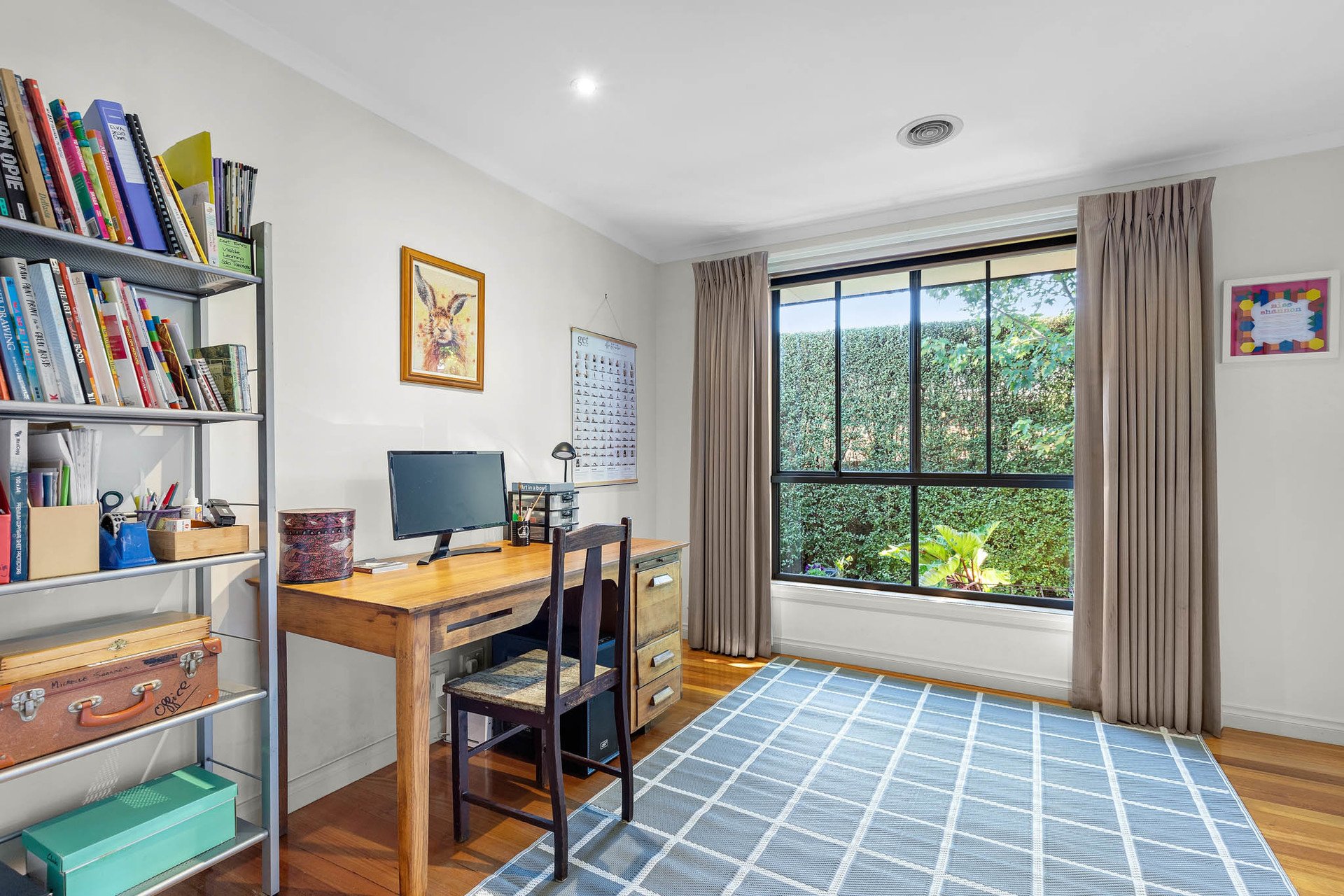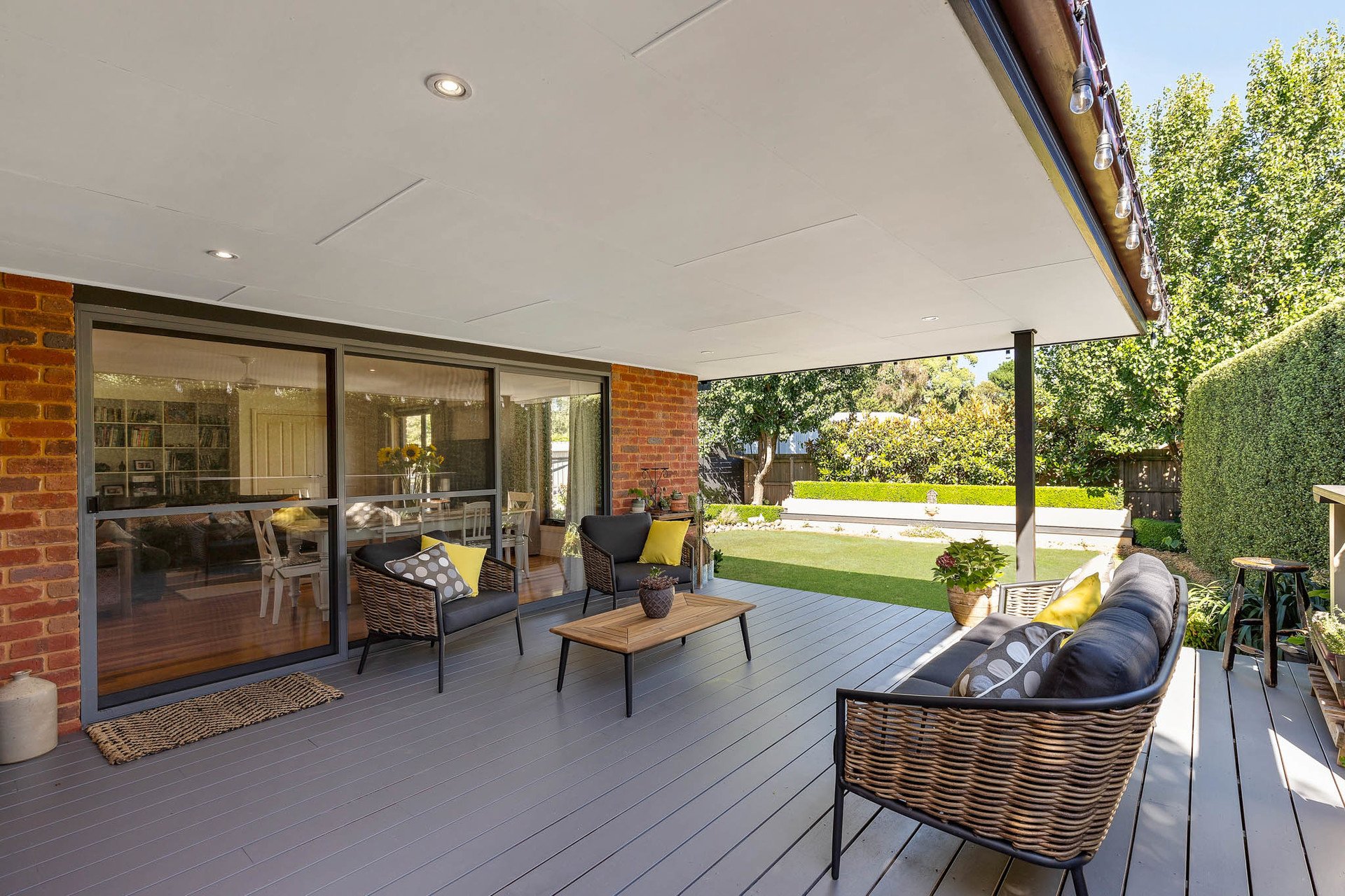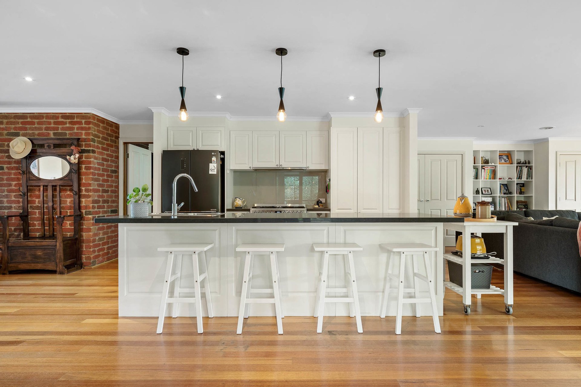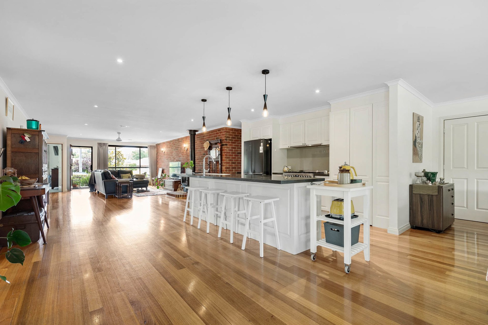 Ideally placed to deliver a serene Macedon Ranges lifestyle close to all the conveniences of nearby town life, this peaceful family home on 834m² (approx.) is situated less than a 5-minute drive to Woodend's vibrant High Street shops and eateries. A charming garden gate introduces the tranquil frontage garden where mature trees provide a haven for a dovecote and small pond, creating a serene atmosphere that continues inside the lovely home. Polished floorboards anchor the open concept interiors with the lounge, living, kitchen and dining areas embracing a gorgeous garden outlook beyond. For the home cook, the kitchen has a dream Belling 90cm gas-burner cooktop and electric oven, split into three parts for economical cooking beneath a Miele canopy, while the oversized pantry with concertina doors has ample room for a microwave oven and coffee station. Outside, a fabulous covered deck provides the perfect setting for family barbecues or quiet reading on a beautiful day. A lawned area bordered by a glorious magnolia hedge and thriving apple tree features long bench seating to one side, making it ideal for large scale entertaining. Accommodation is equally inviting and impressive! Placed to the front of the property, the main bedroom faces east to take full advantage of glorious morning sun and includes a walk-in robe and ensuite. The remaining three bedrooms all have built-in robes and restful views from every window and are serviced by the central bathroom with a full bath. For extra comfort, there is also a powder room. A study/5th bedroom furthers the generous layout. A huge bonus of this property is the garage with internal laundry access, that offers potential to house 5 cars, and is currently set up as a garage and workshop for the home handy person. Additionally there's a 6m x 3m shed, brilliant storage spaces, a vegetable garden, wood fuelled heater, new ducted heating system, a split system, and overhead fans. Delivering every comfort for modern families, it's close to leading schools, Woodend VLine train station, and all amenities, with quick Calder Freeway access.