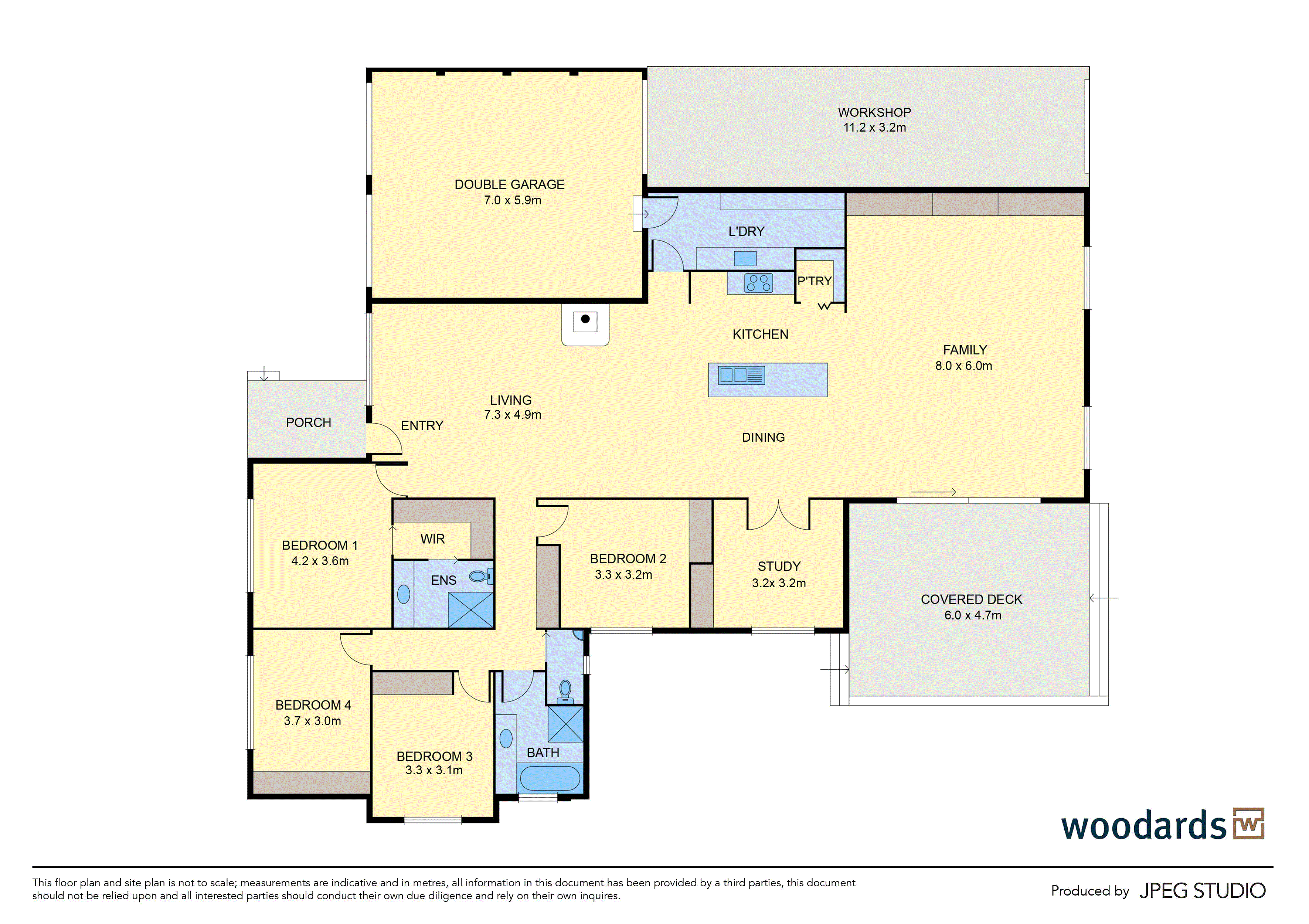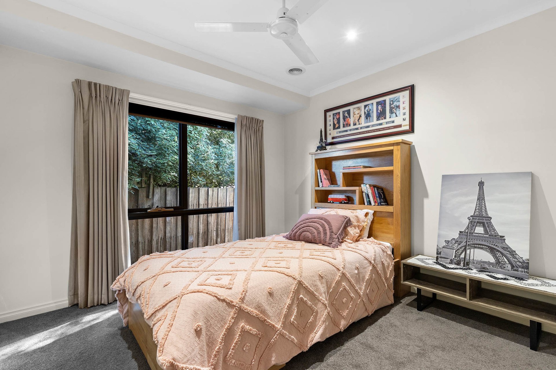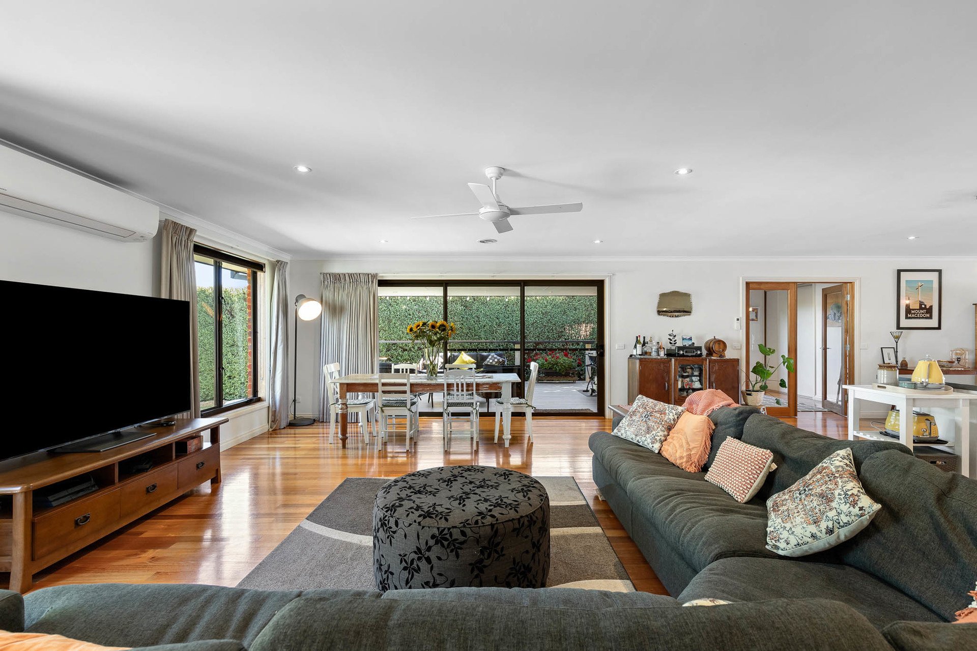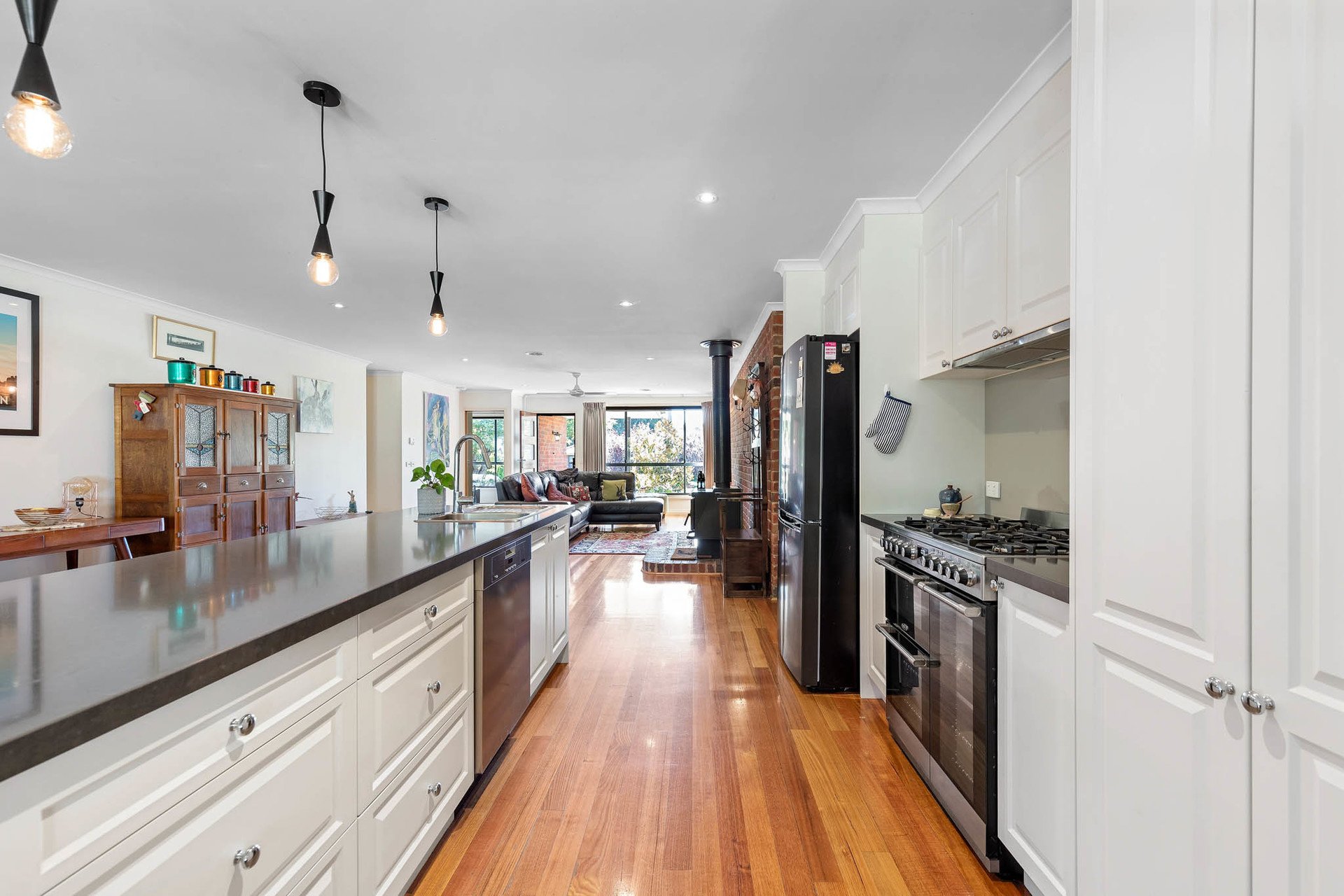Ideally placed to deliver a serene Macedon Ranges lifestyle close to all the conveniences of nearby town life, this peaceful family home on 834m² (approx.) is situated less than a 5-minute drive to Woodend's vibrant High Street shops and eateries. A charming garden gate introduces the tranquil frontage garden where mature trees provide a haven for a dovecote and small pond, creating a serene atmosphere that continues inside the lovely home. Polished floorboards anchor the open concept interiors with the lounge, living, kitchen and dining areas embracing a gorgeous garden outlook beyond. For the home cook, the kitchen has a dream Belling 90cm gas-burner cooktop and electric oven, split into three parts for economical cooking beneath a Miele canopy, while the oversized pantry with concertina doors has ample room for a microwave oven and coffee station. Outside, a fabulous covered deck provides the perfect setting for family barbecues or quiet reading on a beautiful day. A lawned area bordered by a glorious magnolia hedge and thriving apple tree features long bench seating to one side, making it ideal for large scale entertaining. Accommodation is equally inviting and impressive! Placed to the front of the property, the main bedroom faces east to take full advantage of glorious morning sun and includes a walk-in robe and ensuite. The remaining three bedrooms all have built-in robes and restful views from every window and are serviced by the central bathroom with a full bath. For extra comfort, there is also a powder room. A study/5th bedroom furthers the generous layout. A huge bonus of this property is the garage with internal laundry access, that offers potential to house 5 cars, and is currently set up as a garage and workshop for the home handy person. Additionally there's a 6m x 3m shed, brilliant storage spaces, a vegetable garden, wood fuelled heater, new ducted heating system, a split system, and overhead fans. Delivering every comfort for modern families, it's close to leading schools, Woodend VLine train station, and all amenities, with quick Calder Freeway access.
