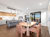 Engineered timber floors flow throughout the ground level, revealing a private guestor master suite complete with a walk-in robe and a stylish semi-ensuite featuring a rainfall shower. The heart of the home unfolds in the open-plan living and dining area, where a designer island kitchen takes centre stage. Showcasing two-tone cabinetry, stone surfaces, and high-end Miele appliances — including a gas cooktop and fridge plumbing — it’s a space that inspires both entertaining and everyday ease.