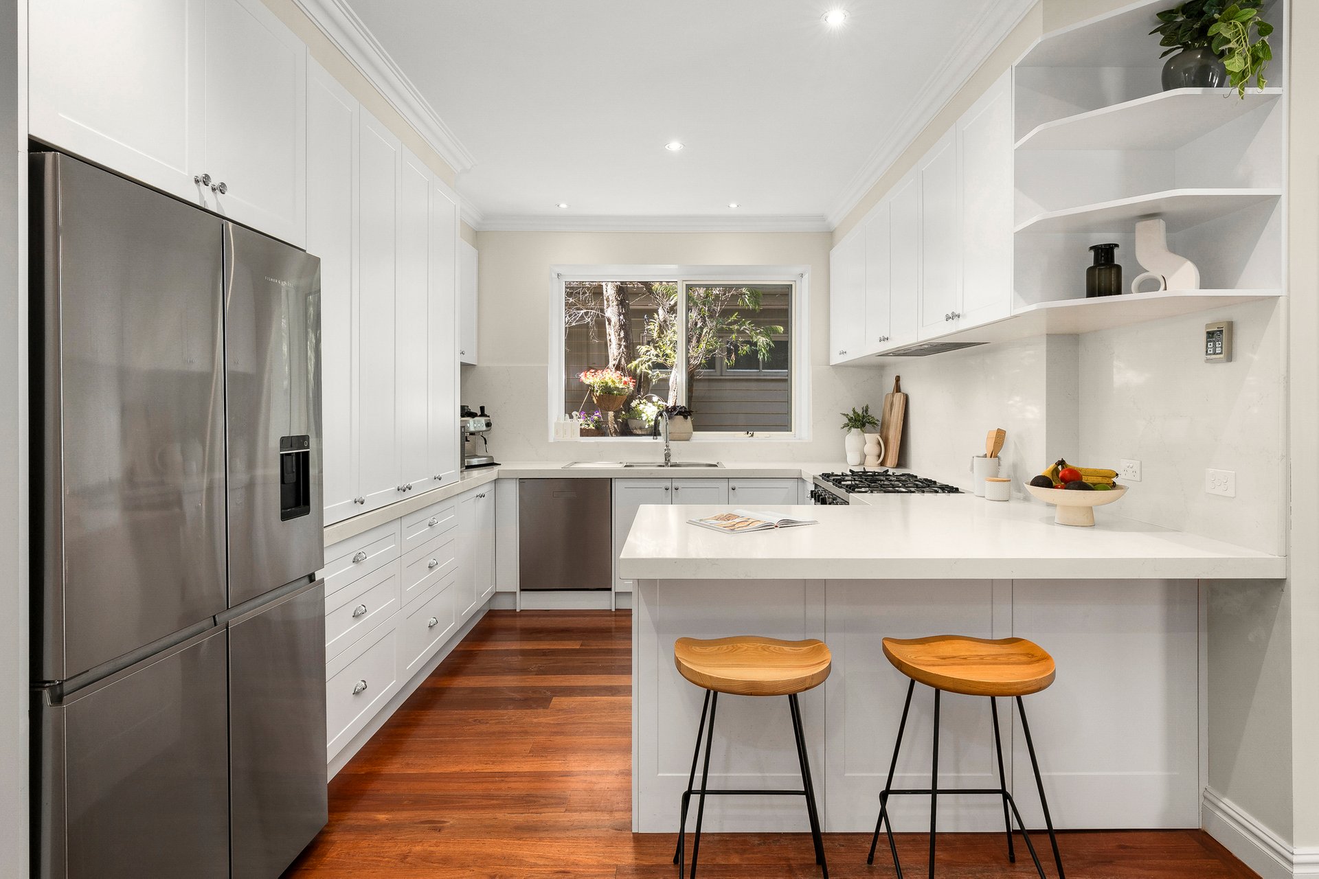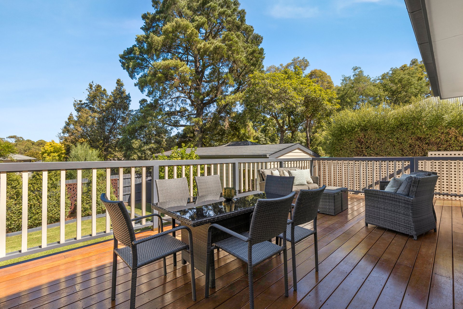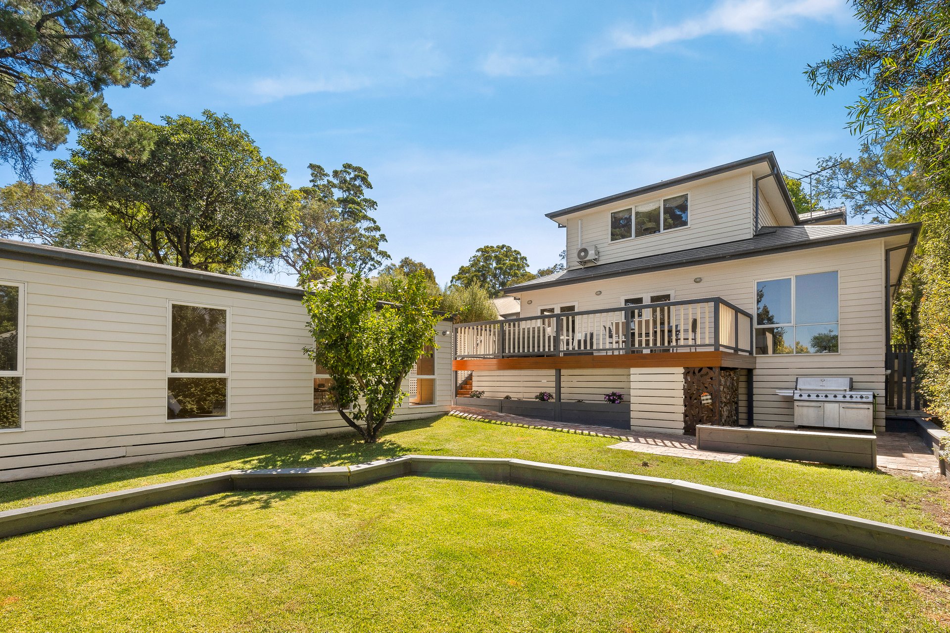 Embrace an elevated and expansive entertainer’s deck where you can soak in serene tree-top views over summer dinners and drinks plus an incredible freestanding studio with its own bespoke bathroom (could be a 6th bedroom) overlooking an immaculately landscaped rear garden. Other highlights include ducted heating and refrigerated cooling, study nook in central living, roof storage, 10,000 litre underground water tanks, and single remote garage with rear access for additional off-street parking.