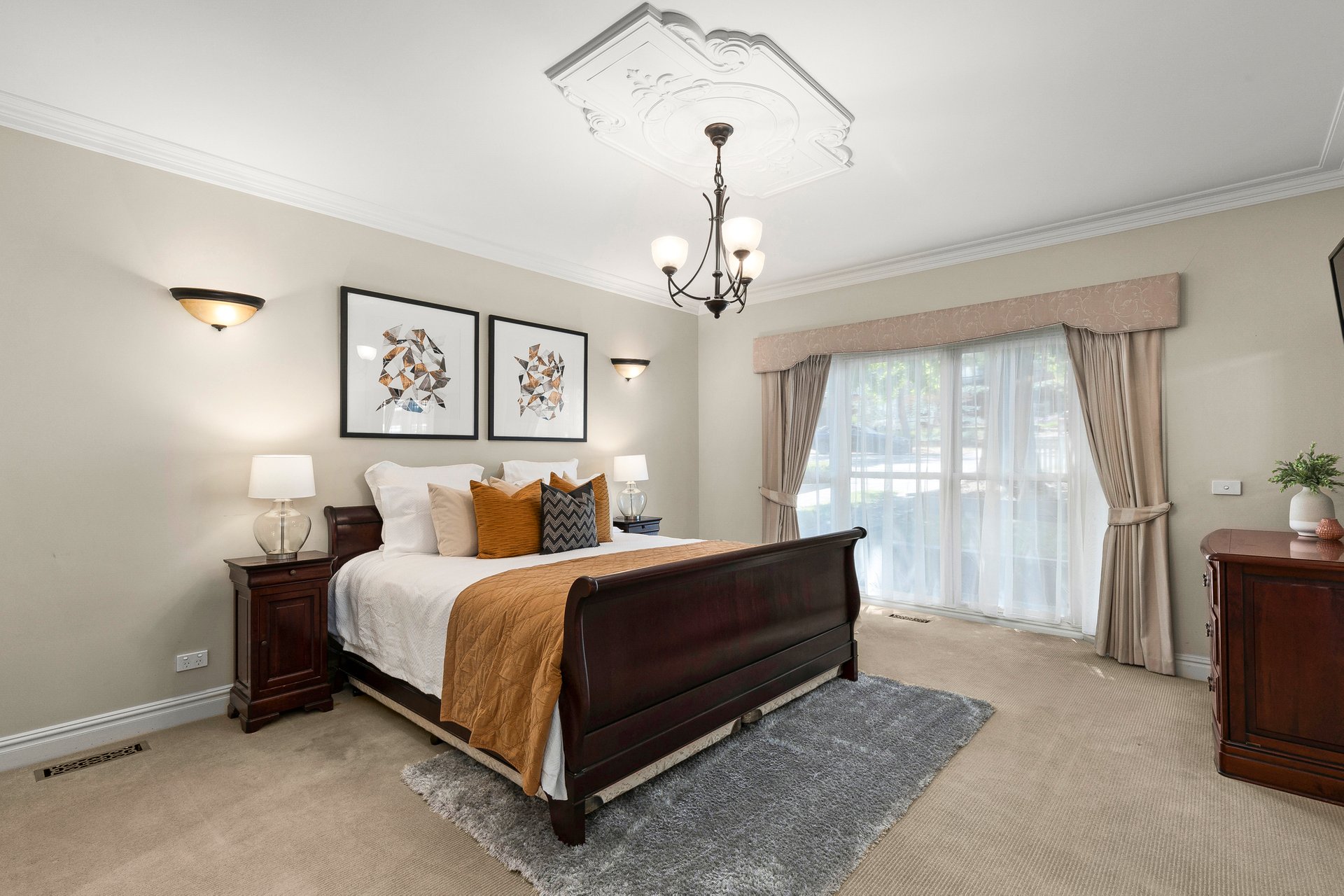 You’ll have an abundance of living options to choose from with this immaculate residence. An expansive and private north facing front lounge room shows off with bay windows and an open fireplace where you can keep warm in winter. The sheer size of the enormous family and dining zone will put a smile on your face, with the adjacent stone kitchen providing an extra space for casual meals along with offering premium Smeg and ASKO appliances including 900mm cooking and further enhanced by an abundance of beautiful display and storage cabinetry.