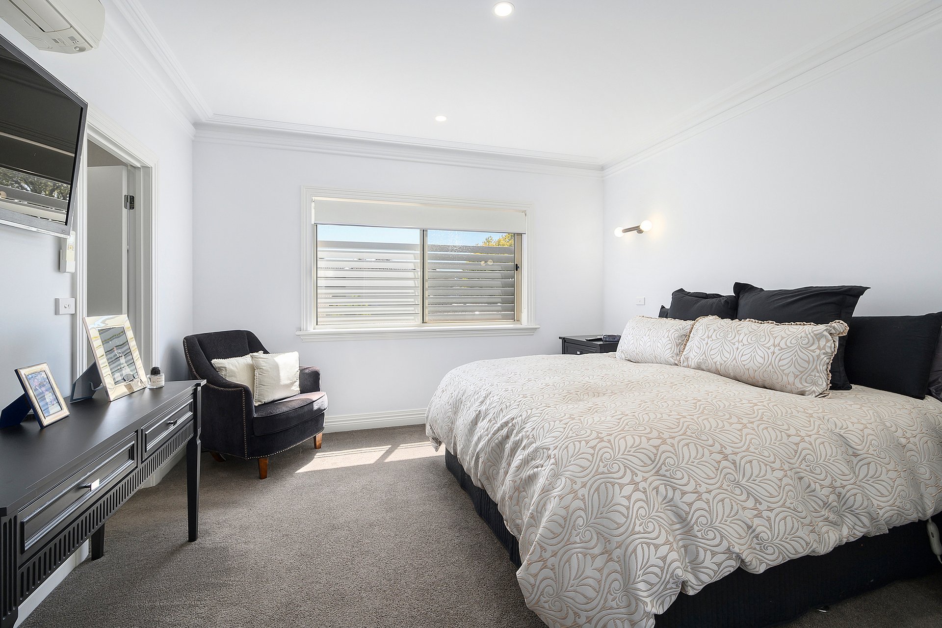 The upper level is equally impressive, introducing four generously proportioned bedrooms highlighted by a luxurious master retreat complete with walk in robe and a sophisticated ensuite. A beautifully finished central bathroom and private balcony elevate the sense of space and indulgence.