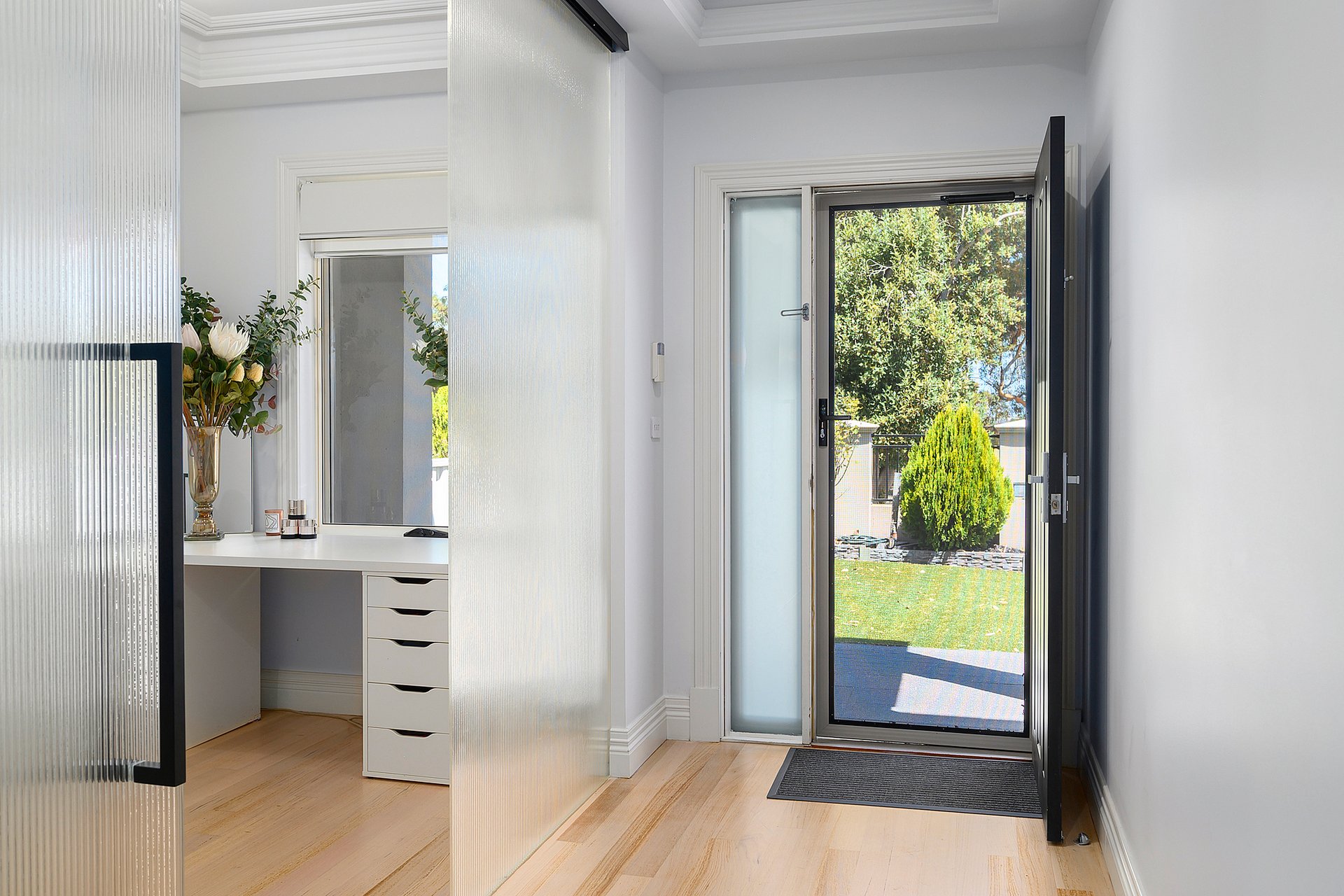 Every detail has been thoughtfully considered, with features including polished hardwood floors, zoned heating and cooling, intercom entry, alarm system and substantial landscaped backyard, lock up garage with internal access and additional off-street parking.