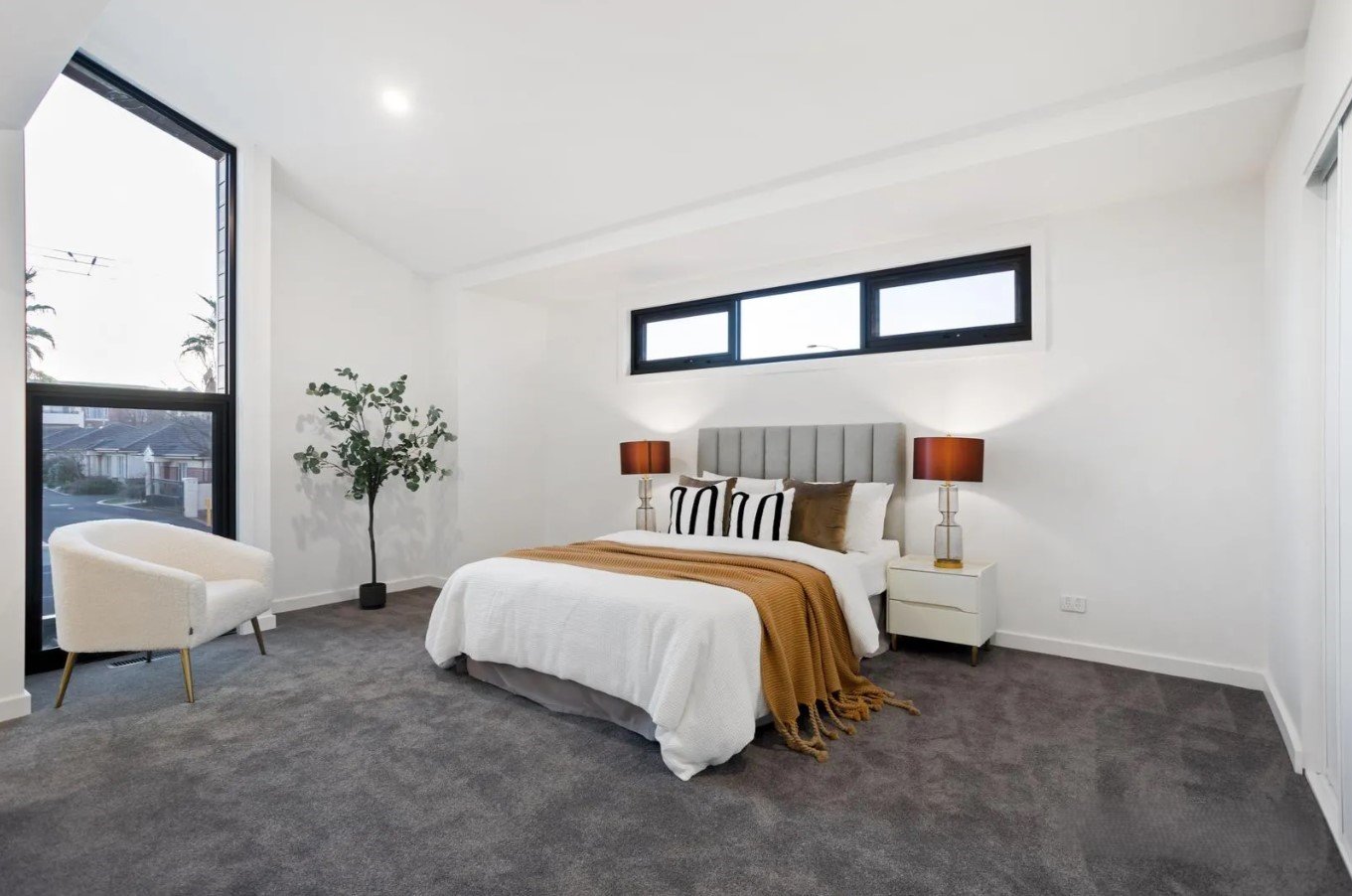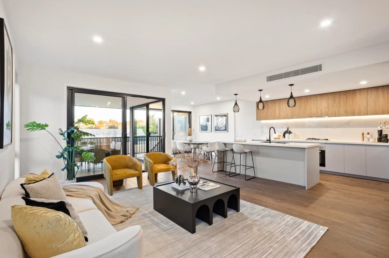 A striking wide frontage introduces sun-filled interiors where premium fixtures, quality finishes, and sleek lines combine to create a home of undeniable sophistication. The sculptural staircase, framed by vertical timber battens, instantly sets the tone for what’s to come — a residence that balances bold design with everyday comfort.