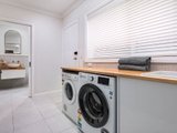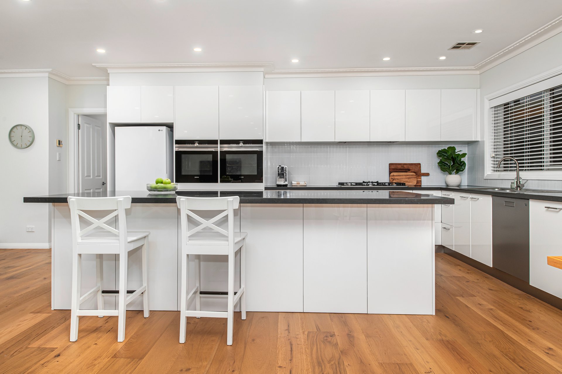 At the heart of the home is a designer stone kitchen that impresses with soft-close cabinetry, an oversized island bench, twin Siemens ovens (one pyrolytic), and premium finishes throughout – ideal for home chefs and entertainers alike.