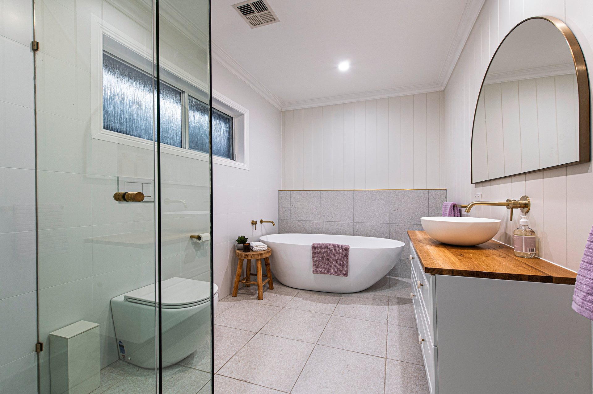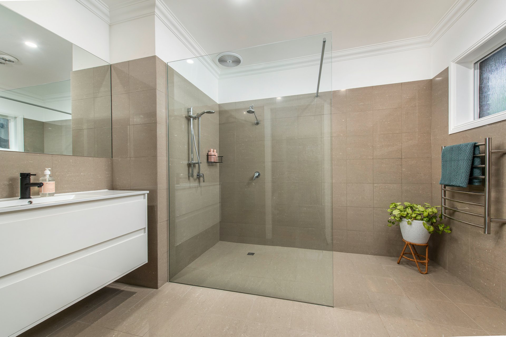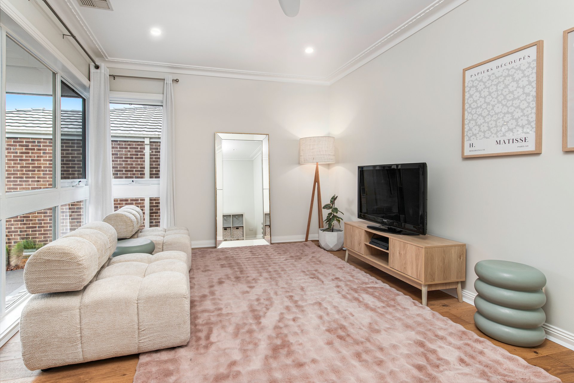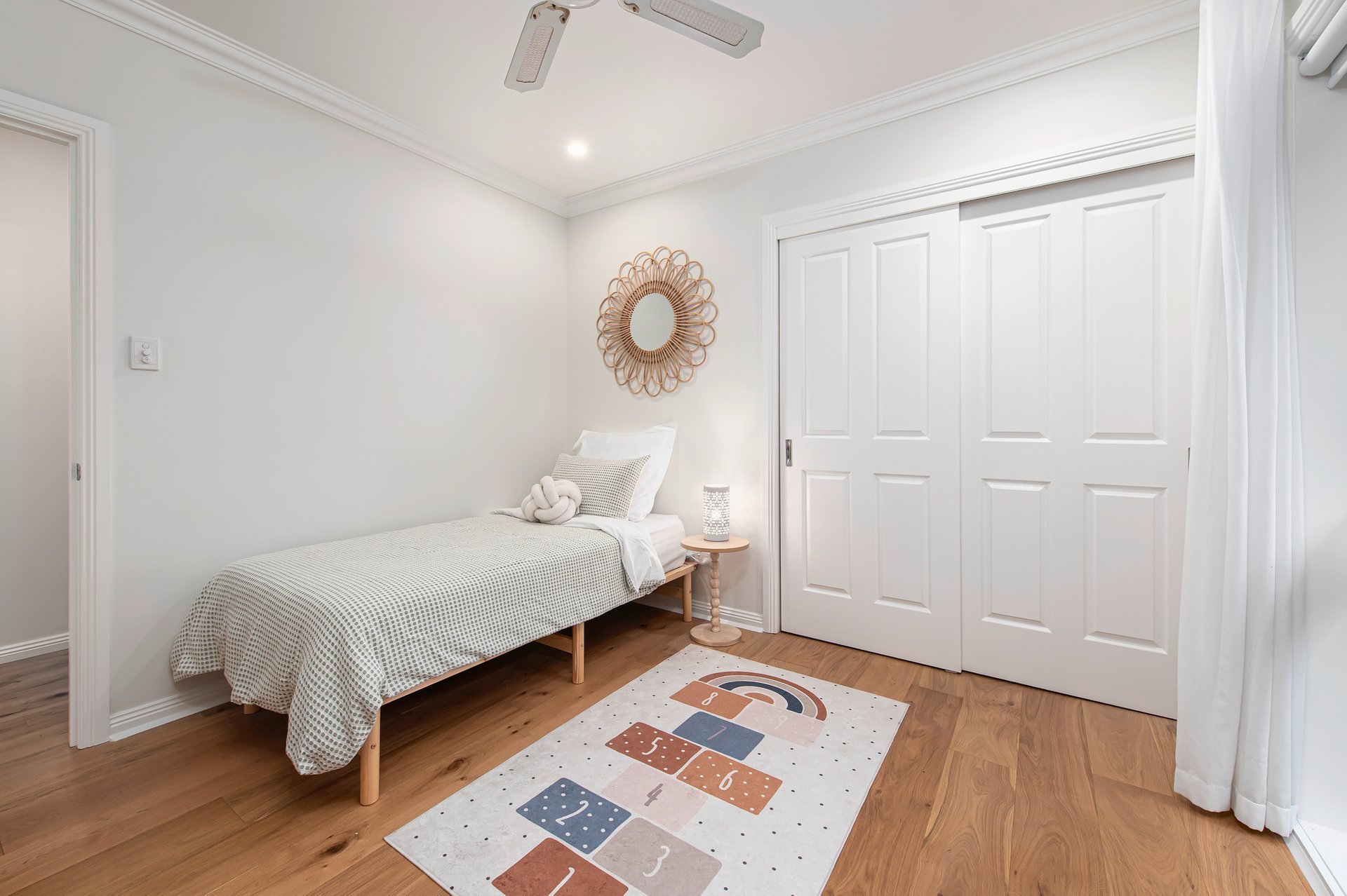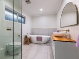 A clever floorplan places two additional bedrooms at the rear in their own private wing, serviced by a hotel-inspired main bathroom with gold-look tapware, rain shower, and freestanding bath – the ultimate retreat for guests or growing teens. While a 4th bedroom and formal lounge room are located towards the front of the home.