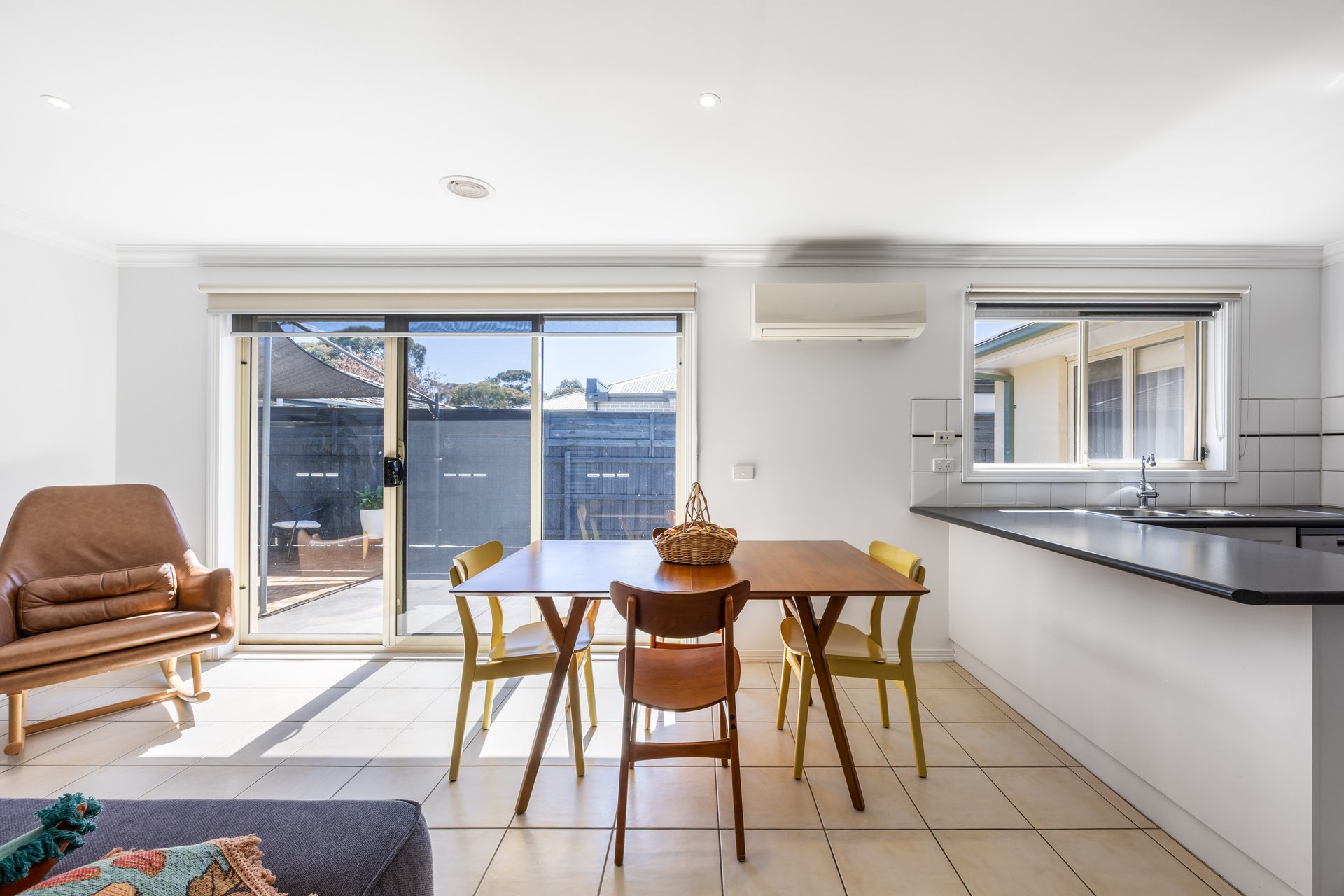 - Open meals and living area with sliding door access to outdoors
