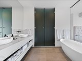 Three bathrooms and powder room feature top-mounted sinks, stone benchtops, frameless showers, and refined finishes. A locked underground workshop and cellar provide extra storage and versatility.