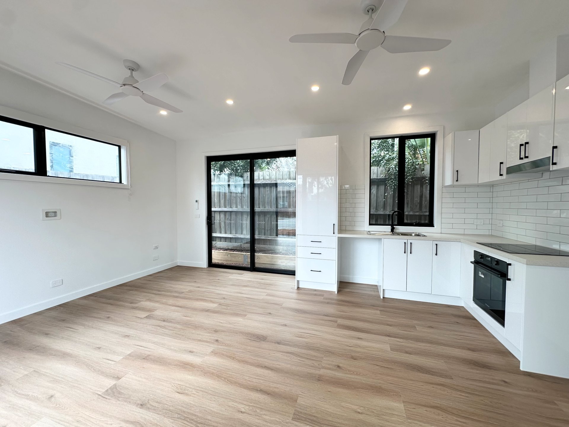 Thoughtfully designed and finished to an exceptional standard, this brand new two bedroom home offers approximately 60 square metres of well planned internal space that maximises comfort, functionality and modern living. The light filled open plan living and meals area flows seamlessly from a contemporary kitchen featuring an induction cooktop, excellent storage and quality finishes throughout. Split system heating and cooling services the living area, complemented by ceiling fans to enhance year round comfort.