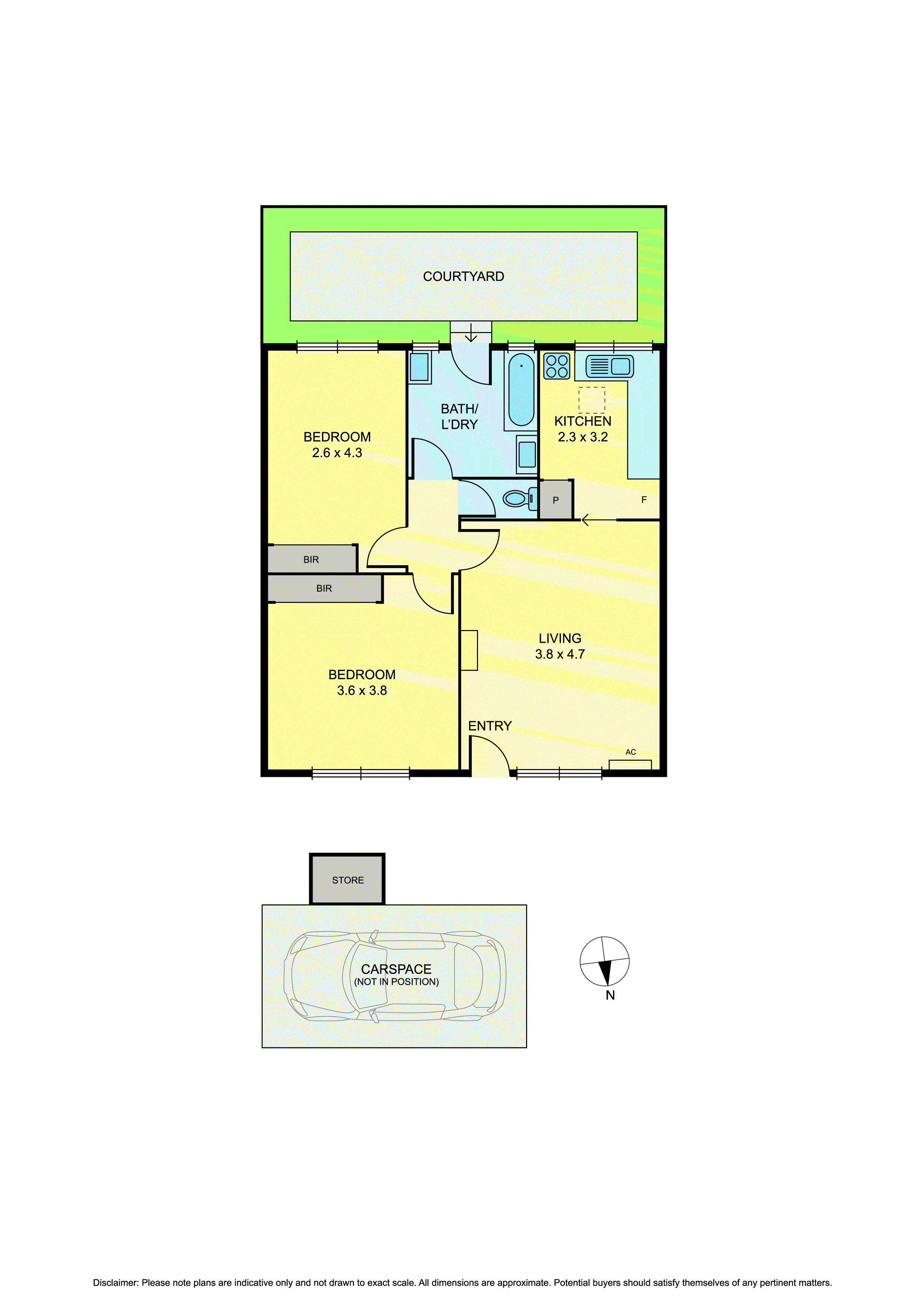 Both bedrooms are generously proportioned and fitted with built-in robes. The home also includes a neat separate toilet and a combined bathroom and laundry, offering practical convenience in a streamlined layout.