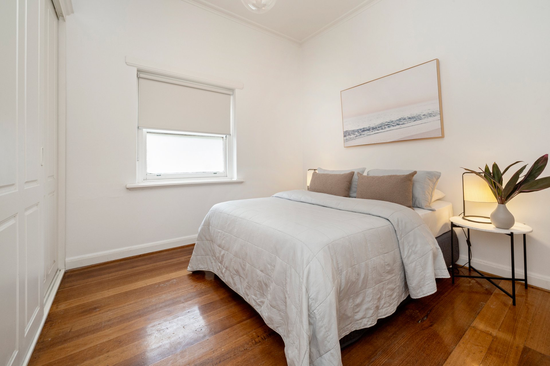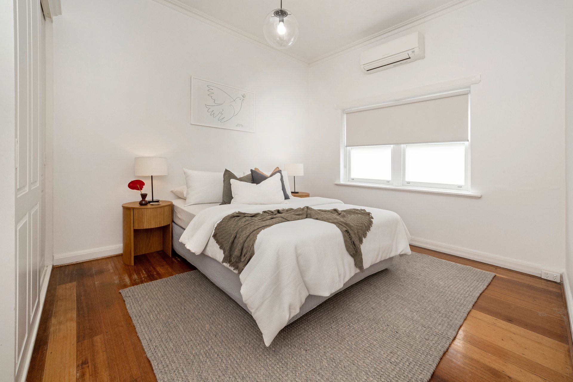 Built-in storage can be found in both of the generous bedrooms; they share a bathroom with both a bath and shower along with a separate WC. Also offered are split system heating/cooling and a Euro laundry. Outside, discover a fabulous, decked courtyard with access to the home’s parking space (on title).