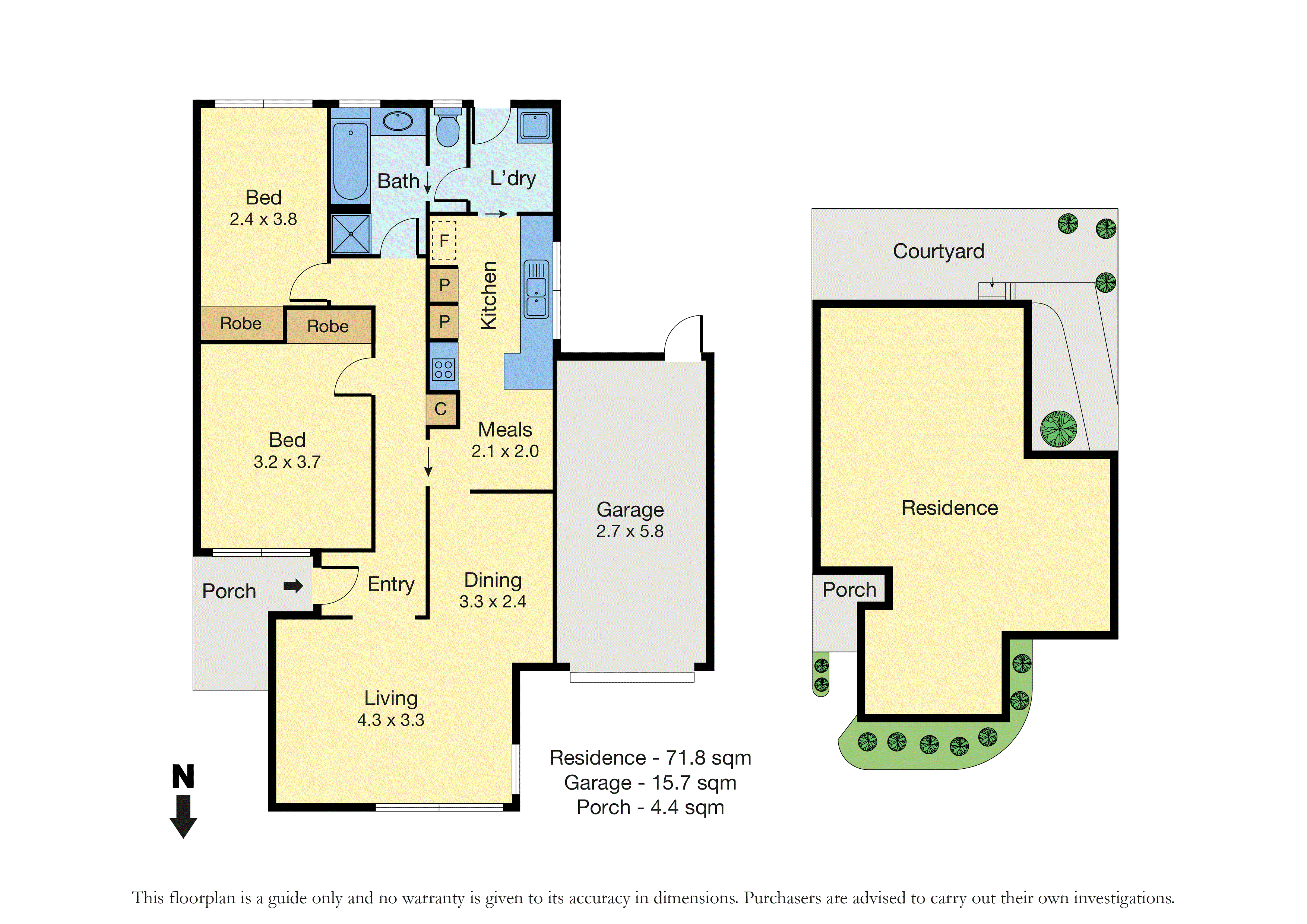 Two peaceful bedrooms are fitted with robes, while the bathroom features both a bath and a step-in shower along with a separate toilet. The laundry opens directly outdoors and there is a single garage with rear access for convenience.
