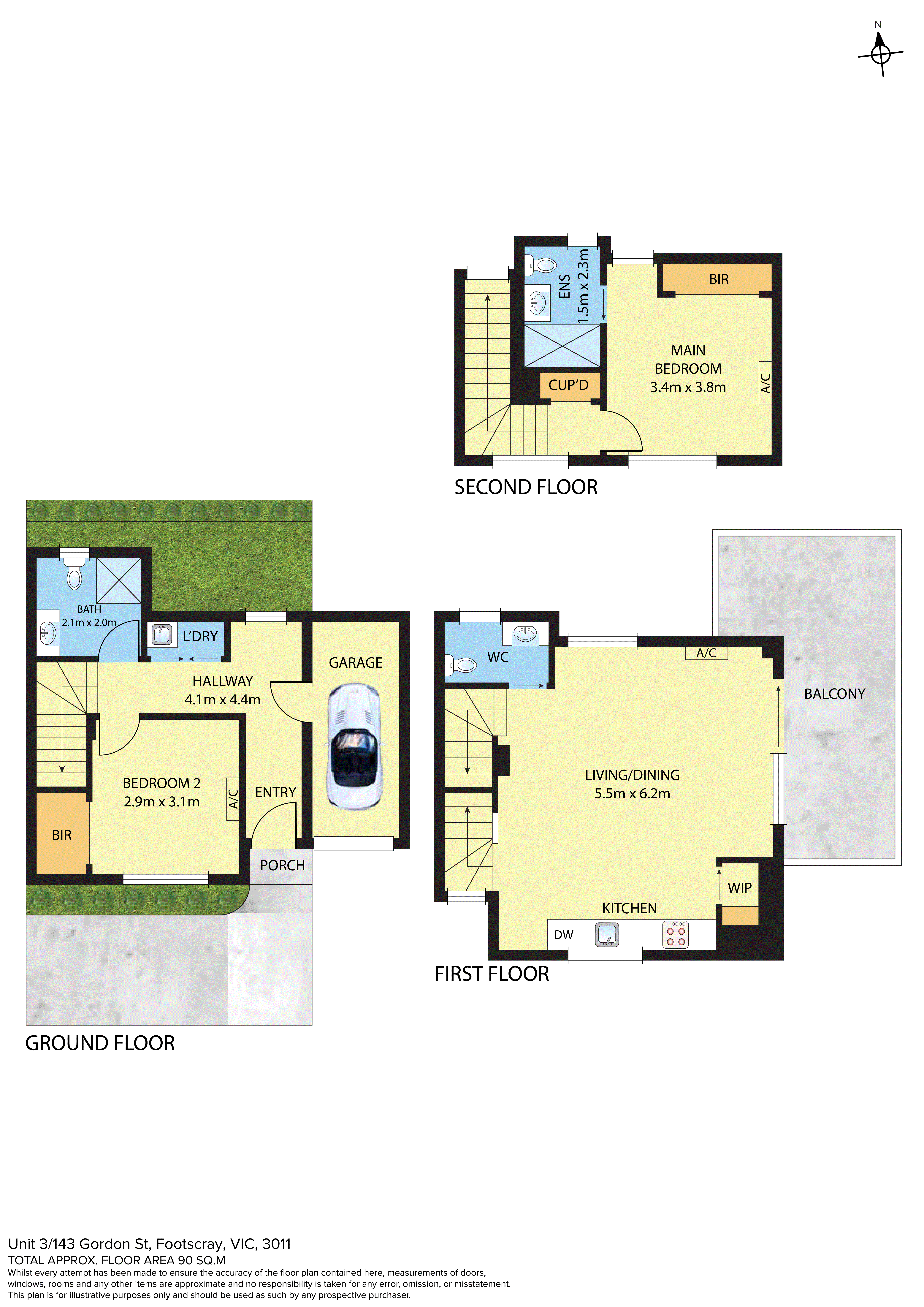 The top level is dedicated to a spacious main bedroom, complete with built-in robes and its own ensuite, offering a peaceful sanctuary away from the main living areas.