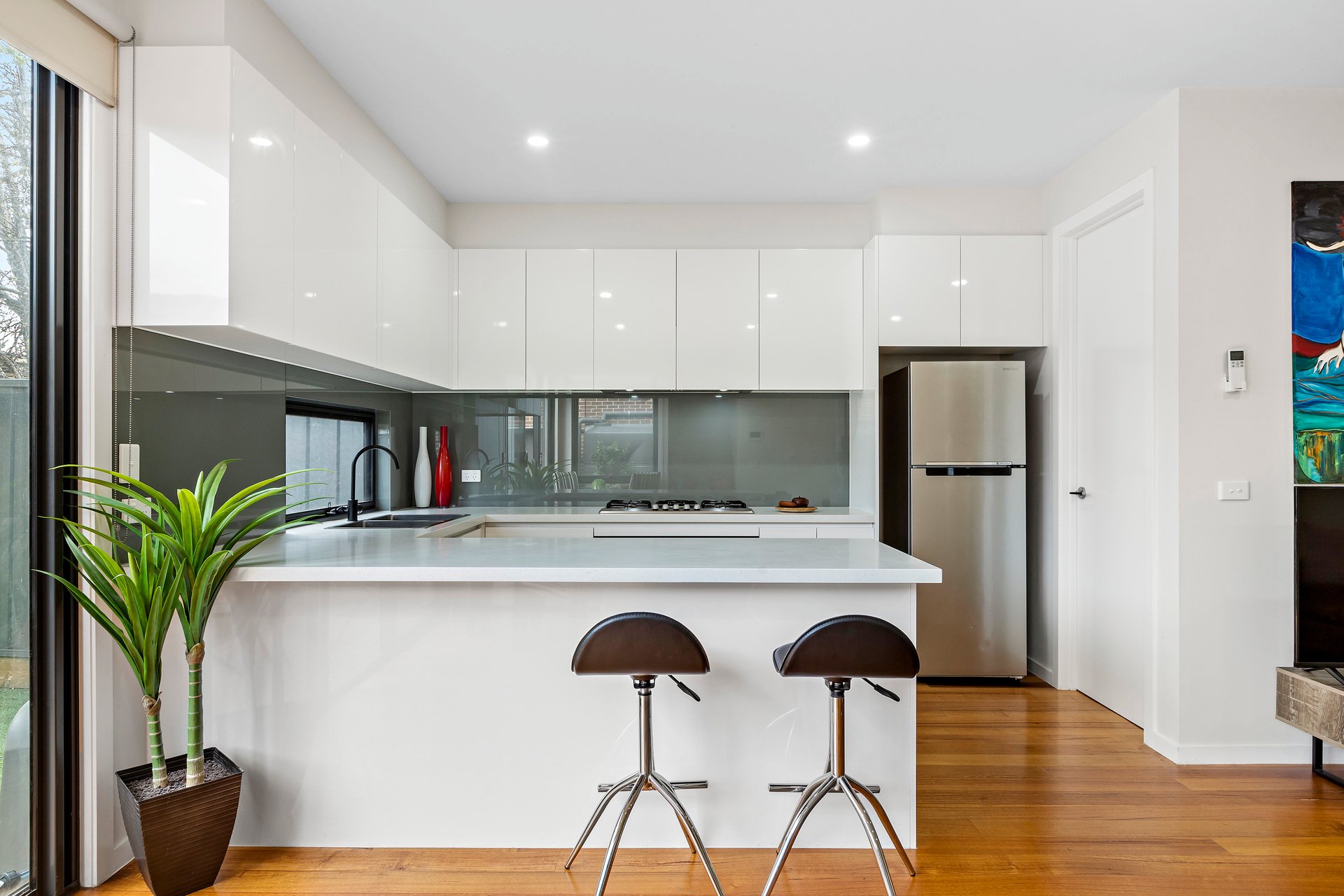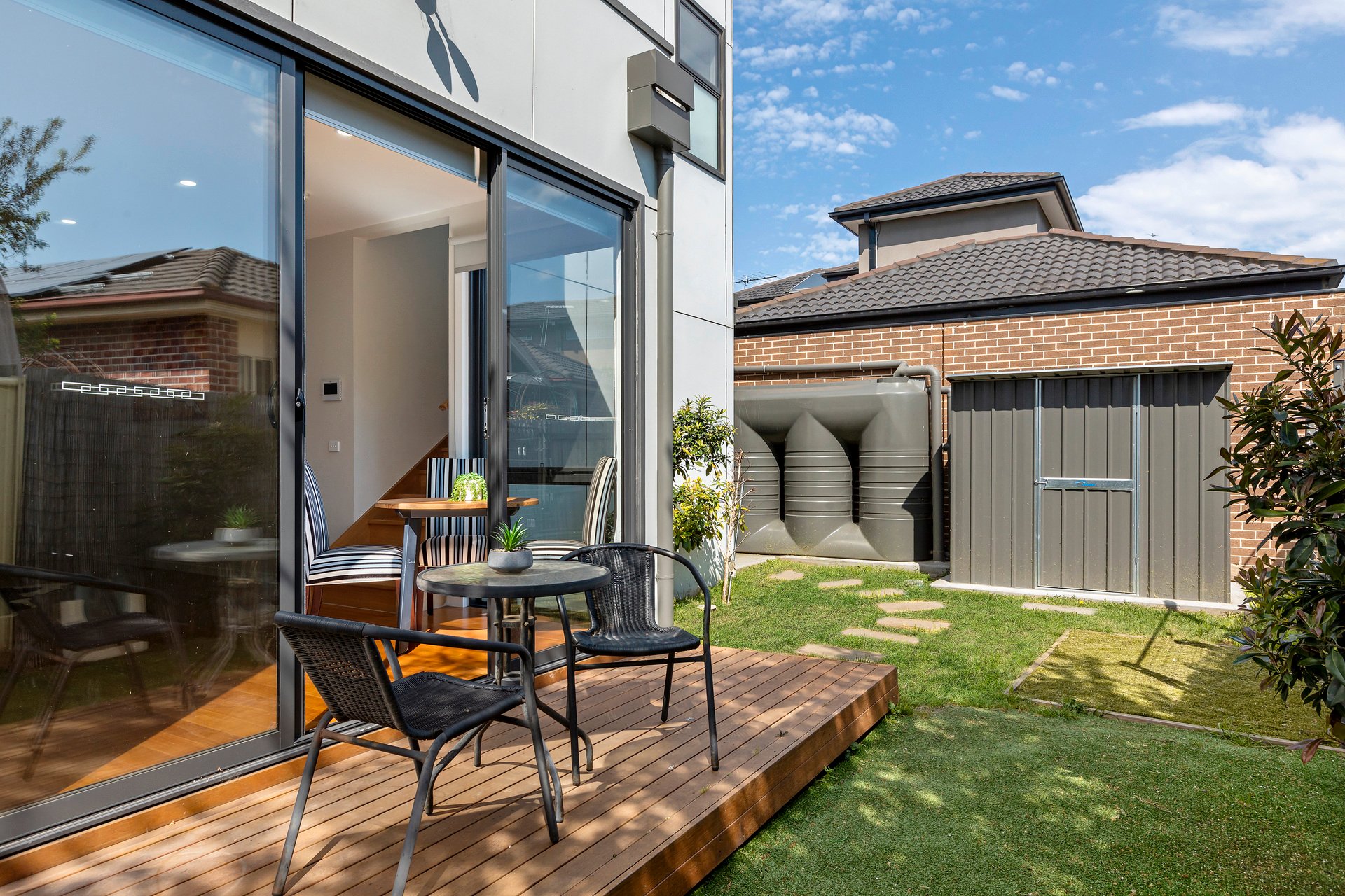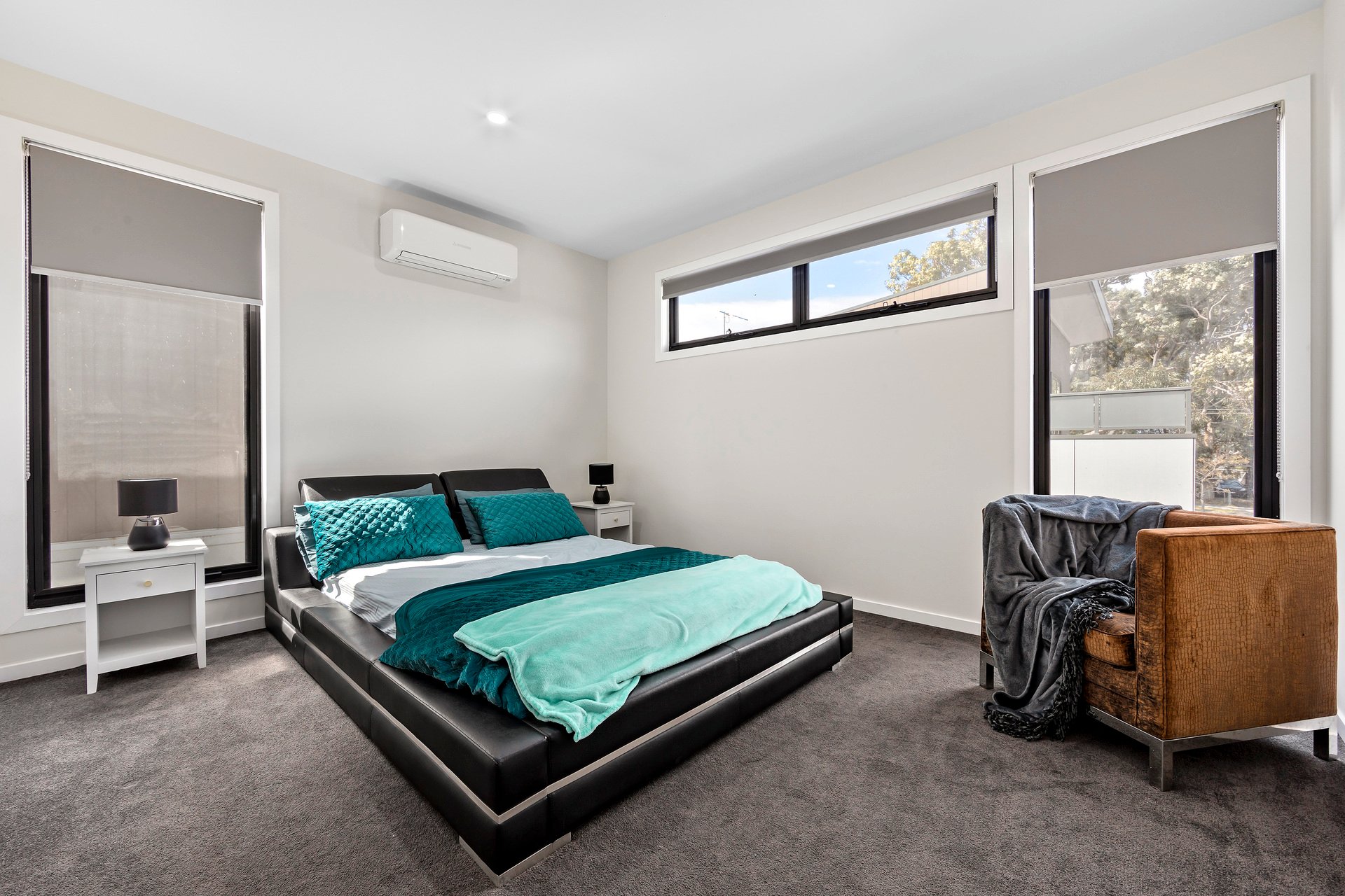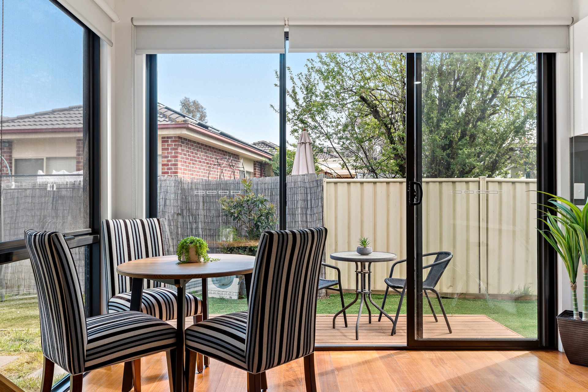 A residence that separates itself from the mainstream theme of townhouse design due to its significant attractions and advantages, this outstanding dual level residence is a 4 bedroom, 3 bathroom home of huge appeal. Superb solid Tasmanian oak floorboards, real rather than engineered, complement living and dining areas of desirable size and style, complemented by a kitchen featuring stone benches, stainless steel appliances and pristine presentation. The accommodation intelligently includes alternative upstairs and downstairs main bedrooms, each with a walk-in robe and ensuite, while the third bathroom highlights the family friendliness of the format. Decked entertaining and a double garage further enhance a home offering the ideal convenience of a bus stop right on the street, within walking distance of Dobson Reserve and just a five minute drive from Highpoint Shopping Centre.