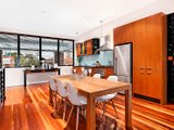 The middle level brings together an expansive light-filled dining area incorporating a high-end kitchen complete with gas cooking and stainless steel appliances, open lounge area with gas log fire overlooking over a spacious outdoor entertaining area with built in seating.