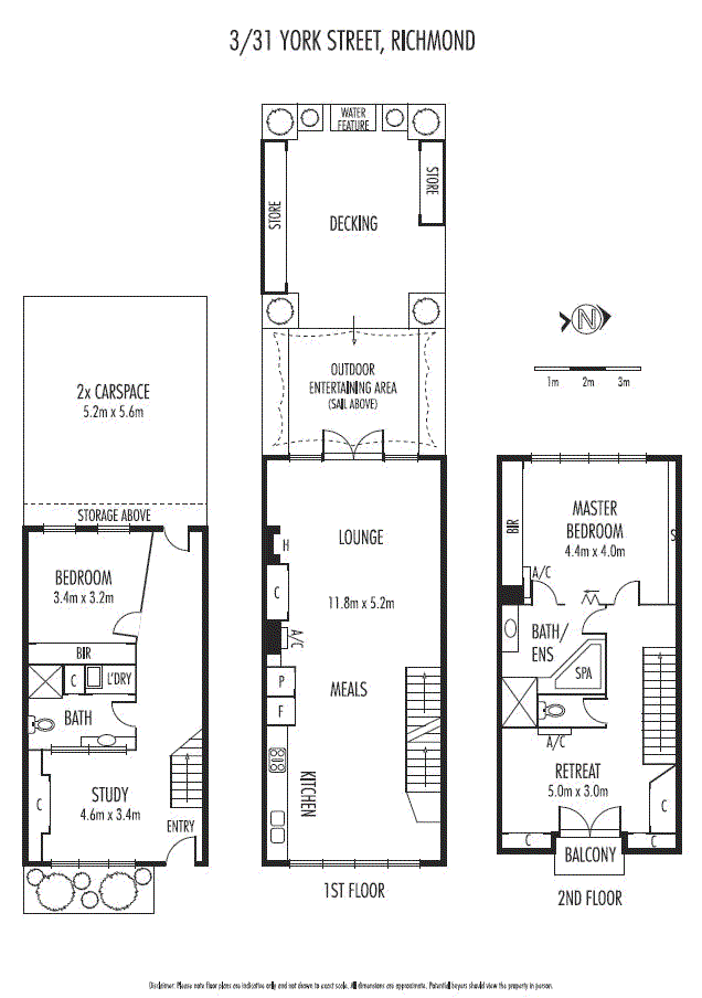 The top floor offers an amazing master bedroom suite which includes built in robes, floor to ceiling windows, views of the city skyline, a stunning ensuite bathroom, separate toilet, and a large open study with built in robes, ample cupboard storage and a private balcony.