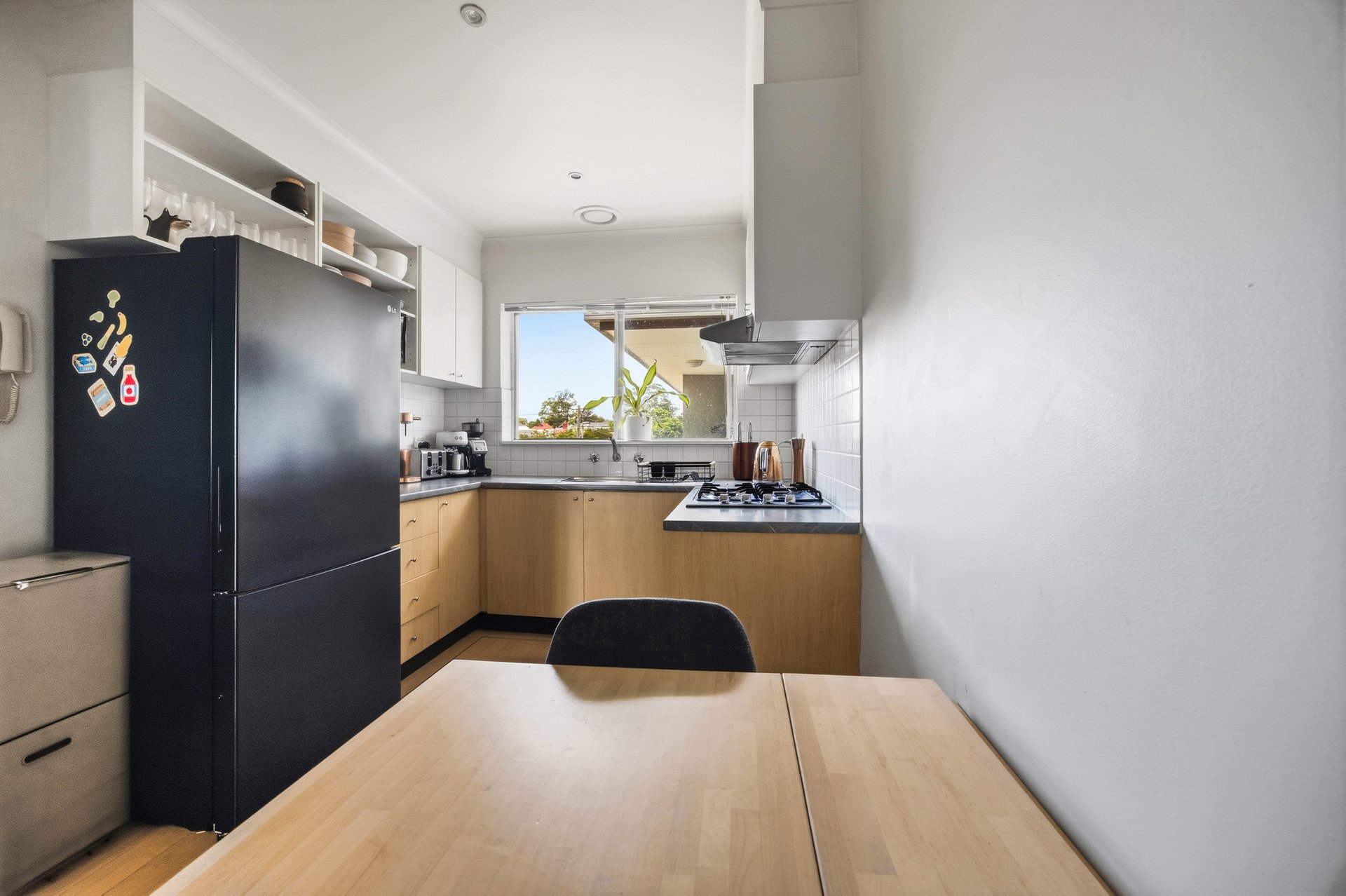 Set to impress on the second floor of a tightly held boutique block, this spacious two-bedroom corner apartment delivers a ready-made lifestyle in a highly regarded inner-north setting. Offering outstanding value and broad appeal, it is an ideal opportunity for first home buyers, professionals, and investors alike. The apartment opens to a spacious, light-filled living zone that is comfortably air-conditioned and perfectly complemented by a well-appointed kitchen and meals area. Featuring a gas cooktop, generous bench space, and ample storage, the kitchen is designed for both everyday living and easy entertaining. North-westerly light floods the home, extending outdoors to a covered, elevated balcony that enjoys a pleasant neighbourhood outlook. Privately positioned in a prized corner setting, this inviting space is ideal for relaxed morning coffees or unwinding with a drink at the end of the day.