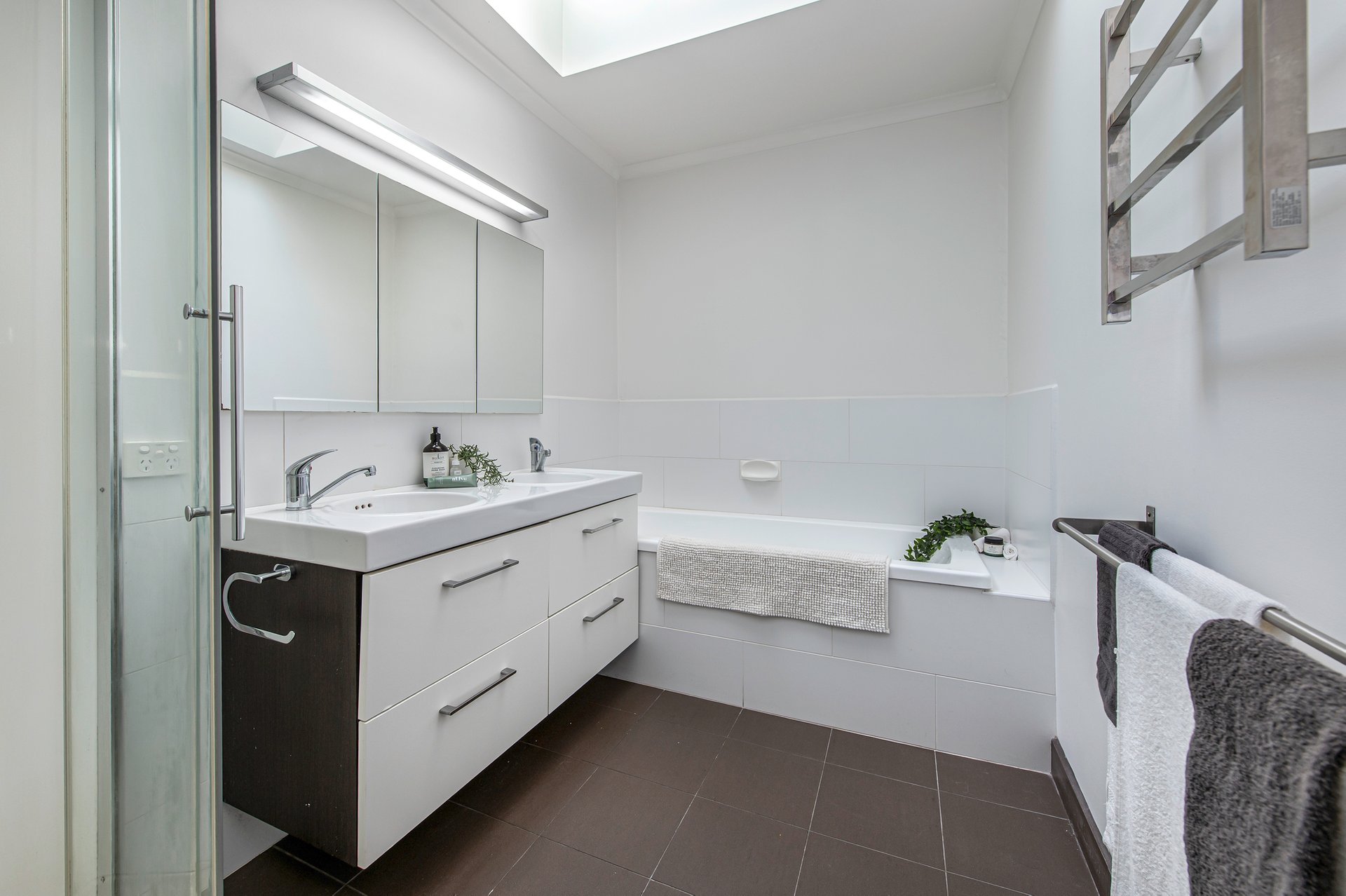 The renovated kitchen features gas cooking, a dishwasher, and easy access to the laundry with an extra guest toilet. Upstairs, both bedrooms are generously sized with built-in storage, and the sparkling bathroom includes a full-size tub—perfect for relaxing after a long day.
