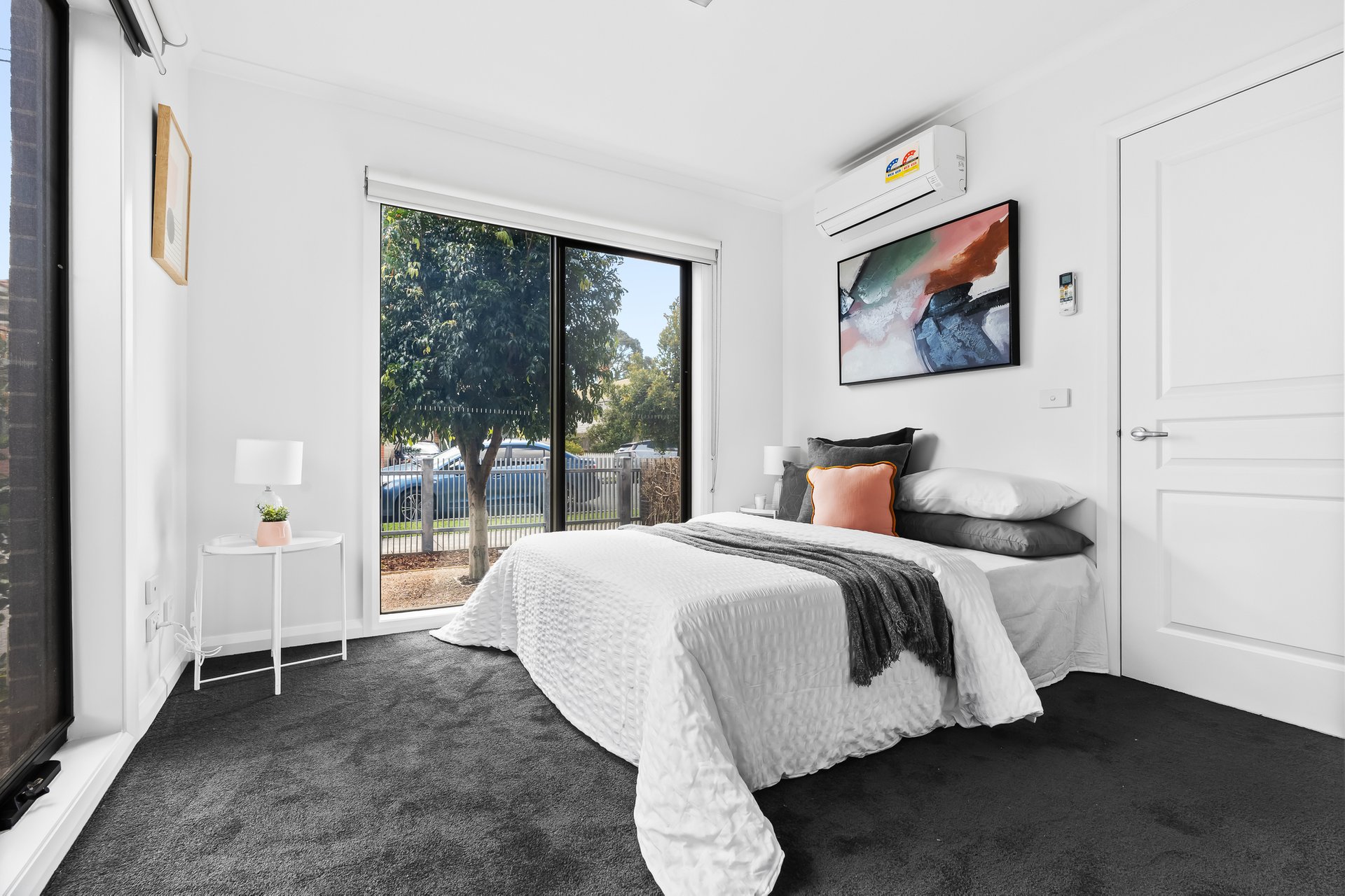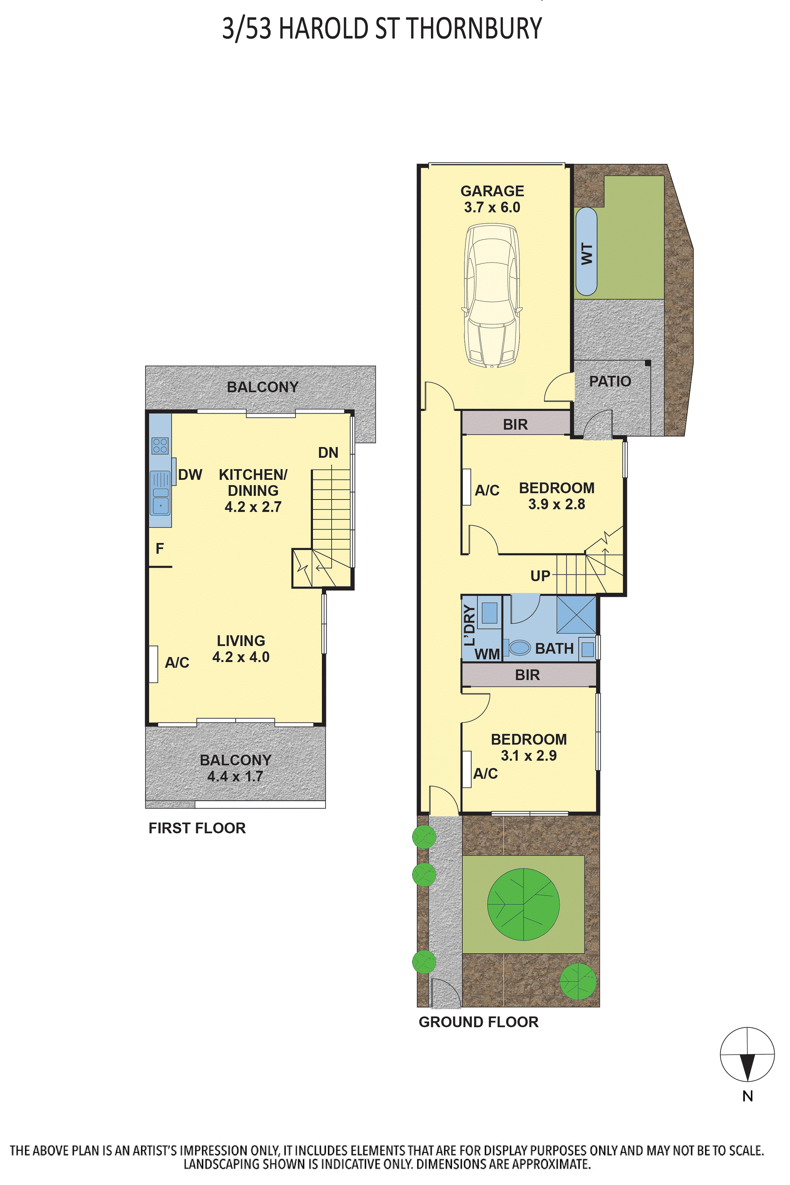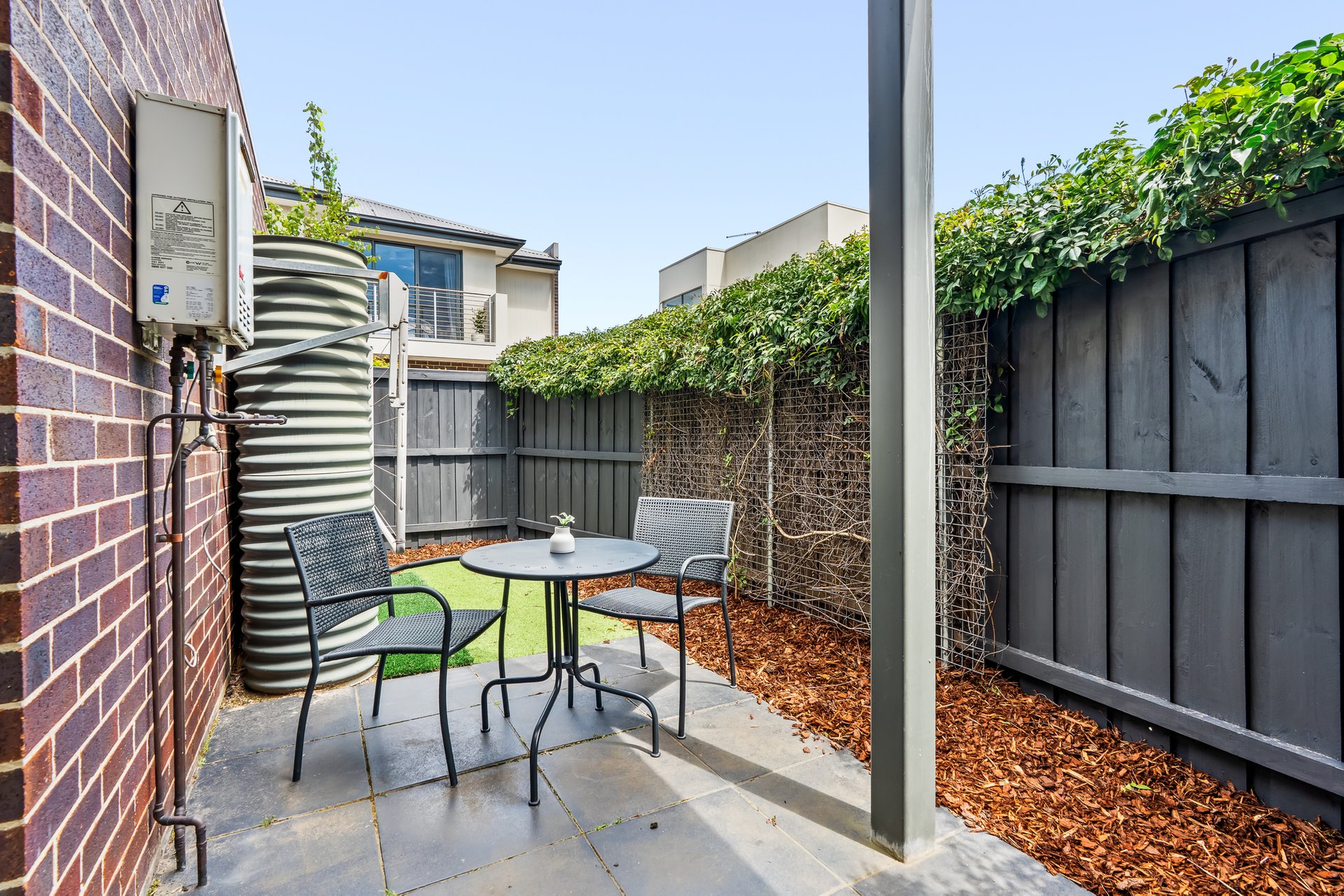 Discover this delightful townhouse offers a perfect blend of modern comfort and style. Featuring two spacious bedrooms, each equipped with built-in robes and air conditioning, ensuring a cosy and relaxing atmosphere. The sleek and contemporary bathroom is designed for convenience, alongside a practical laundry area with space for a washing machine. The open-plan living area on the first floor is a highlight, seamlessly connecting the living room and a well-appointed kitchen and dining space. The kitchen boasts functional cabinetry and a dishwasher, making meal preparation a breeze. Step outside to enjoy two expansive balconies, perfect for outdoor entertaining or unwinding after a long day. A private patio and neat garden space further enhance the outdoor living experience. Additional features include a secure garage, providing ample storage and convenience. This townhouse promises contemporary living in a sought-after location, ideal for those seeking a stylish and comfortable home. Within the vicinity, Thornbury offers convenient access to amenities such as the renowned Northcote Plaza Shopping Centre, just a short drive away. Educational facilities like Thornbury High School are also nearby, making this location perfect for families or individuals seeking a vibrant community with easy access to essential services and entertainment options.