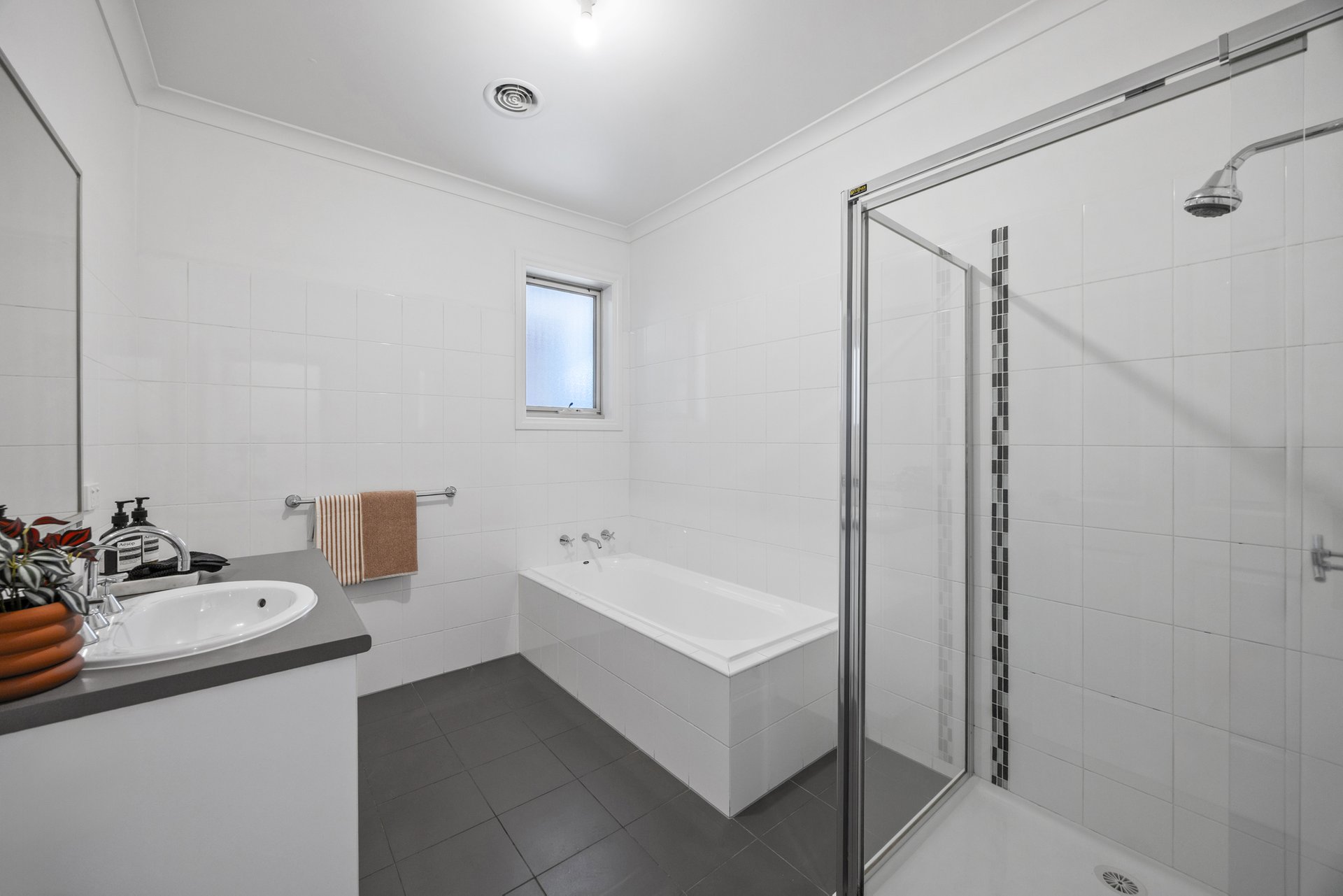 Two generous bedrooms, each with built-in robes and plush carpet, provide comfortable retreats with plenty of natural light. The bathroom large bathroom comprises separate bath, shower, and single vanity, complemented by a separate WC and a dedicated laundry with linen storage.