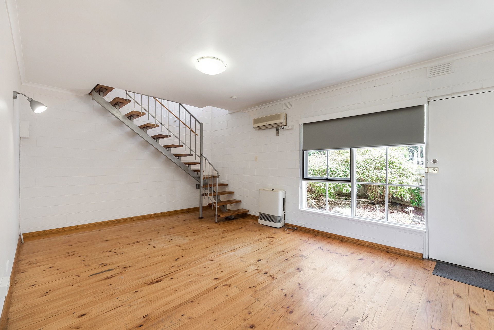 This home features a spacious living and separate dining area with near-new floating floors and heating/cooling split system downstairs for year-round comfort. The functional kitchen includes gas cooking and ample cupboard space. Upstairs offers two bedrooms with built-in robes and a modern bathroom. Outside, low-maintenance front and rear courtyards provide a peaceful space, along with a secure single carport for parking.