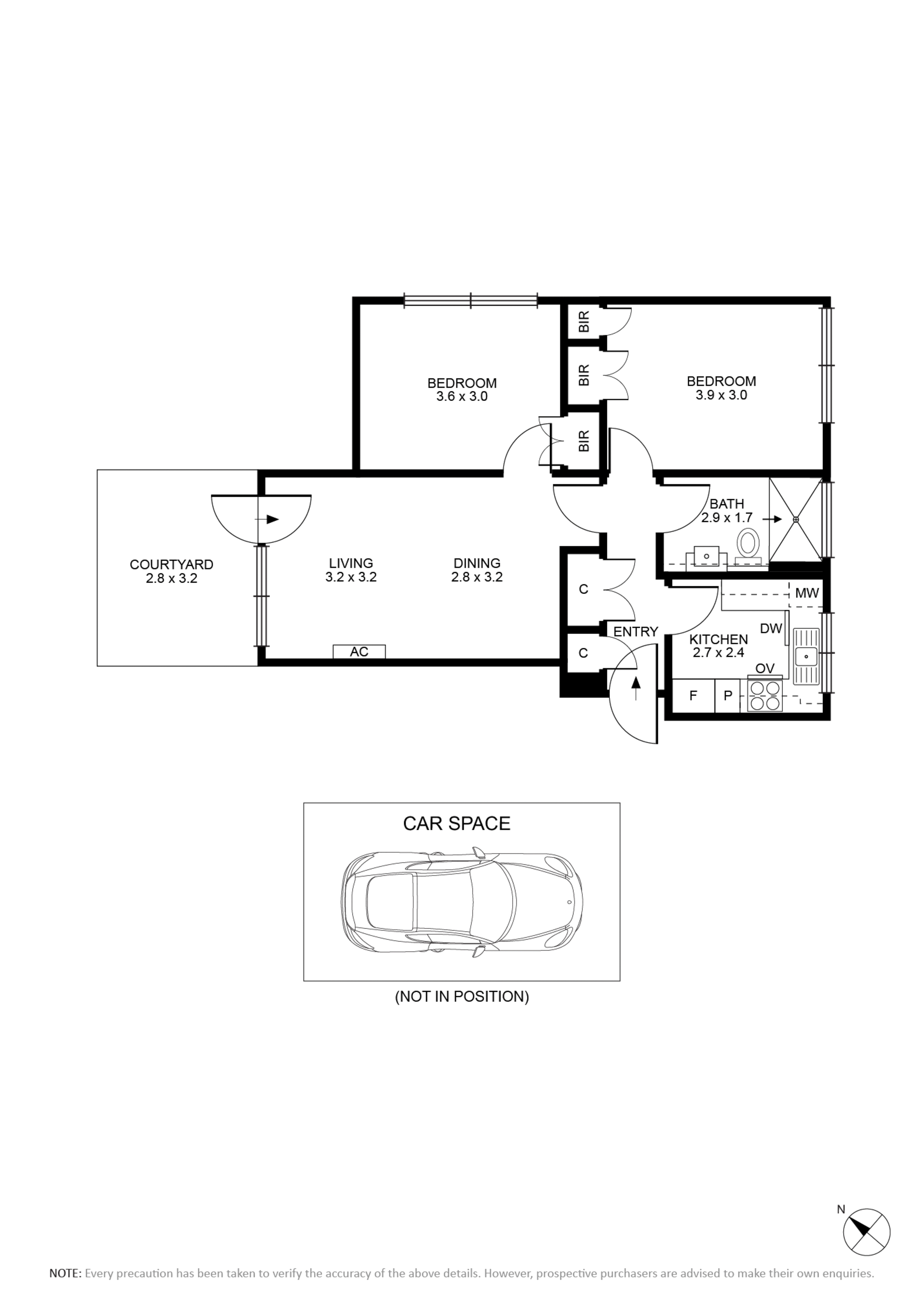 Accommodation includes two comfortable bedrooms, both carpeted and fitted with built in robes. Ceiling fans provide additional comfort while large windows allow for good natural light.