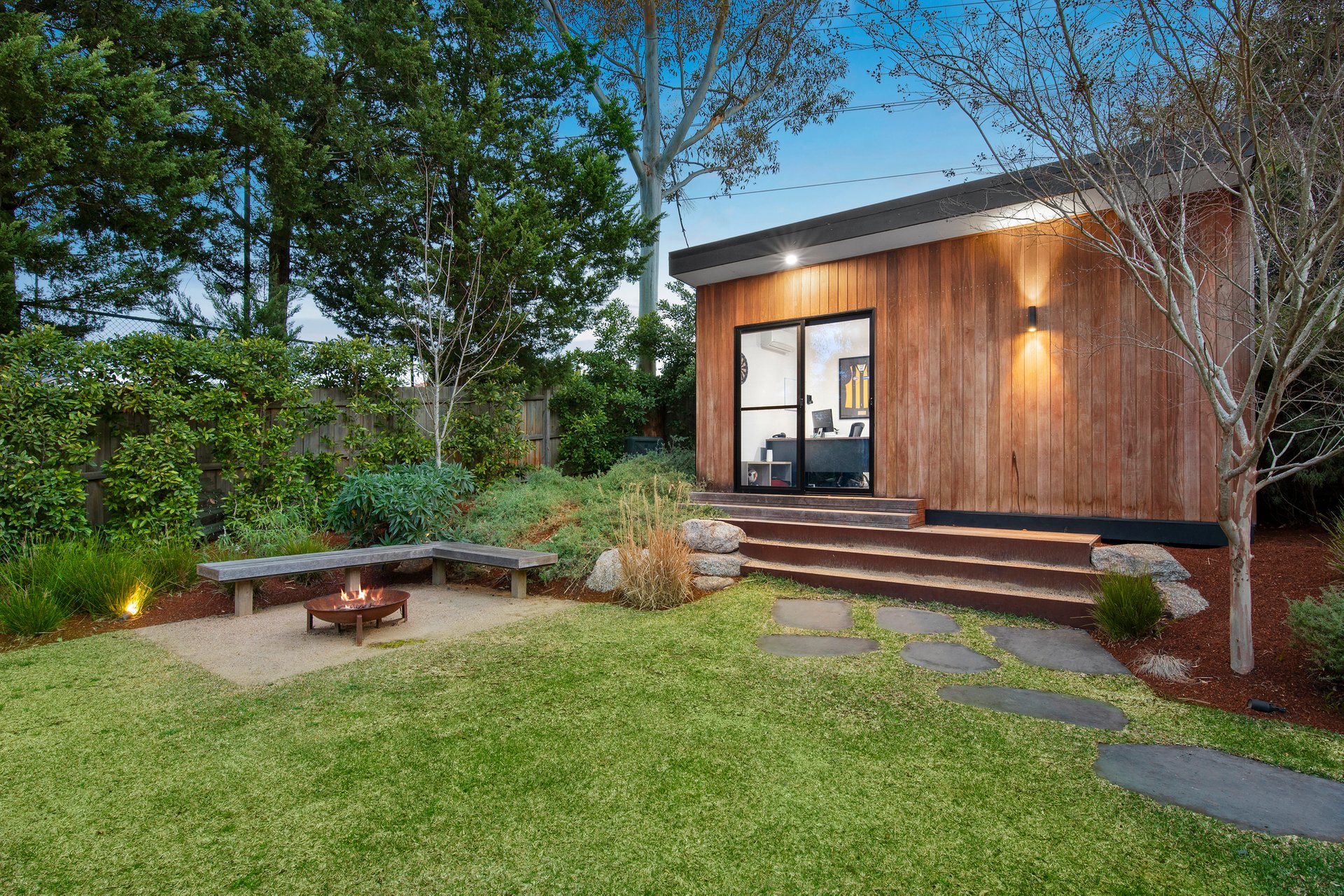 Outdoors, beautifully manicured gardens create a serene setting, complete with a dedicated firepit area for cosy evenings under the stars. A separate studio offers endless possibilities as a home office, creative space, or personal gym.