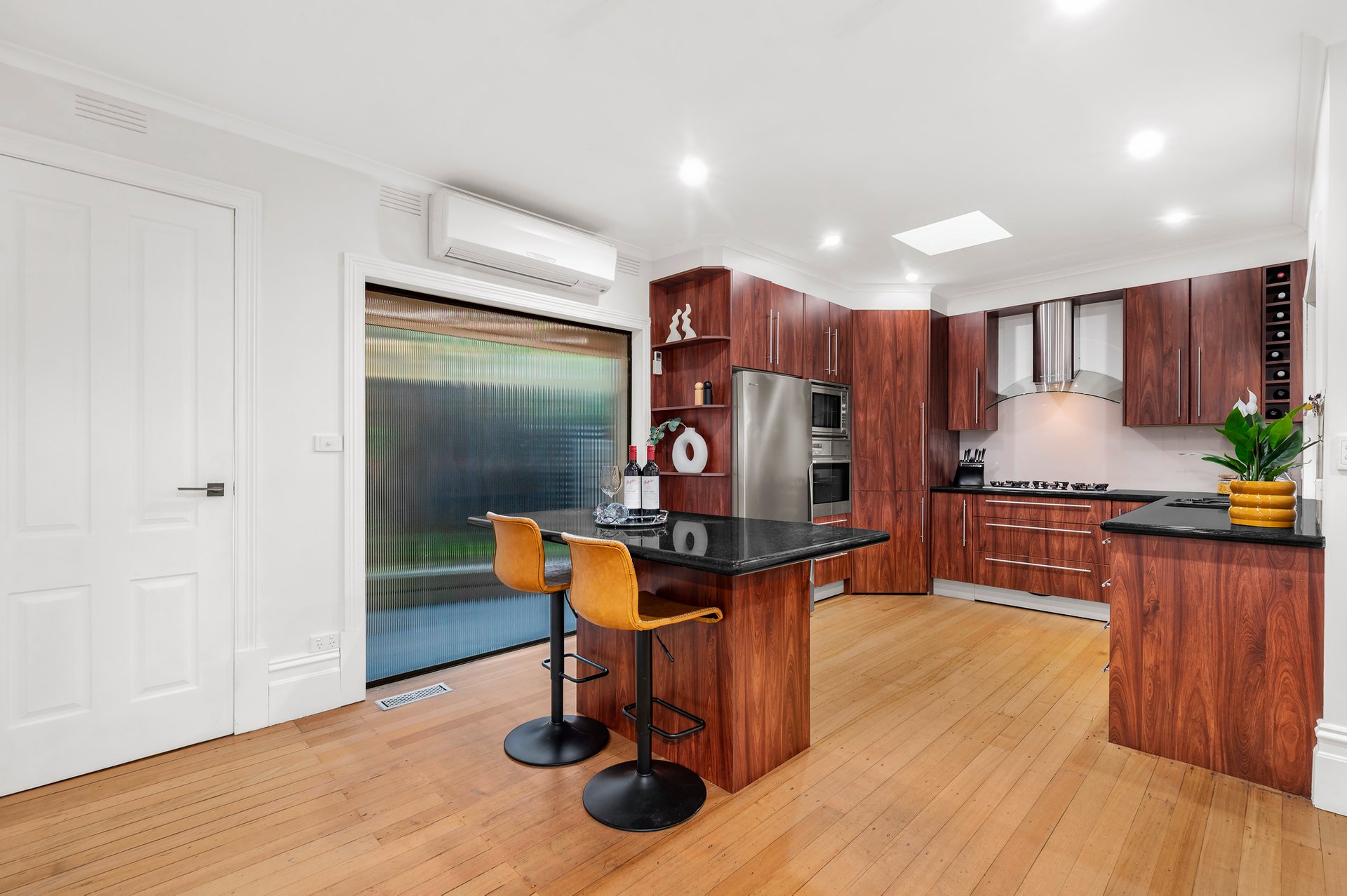 A private haven where a family can thrive, this home encompasses a sprawling double storey floorplan that has been stylishly renovated over time. It comprises a relaxing lounge, a multi-purpose room that incorporates the laundry, and an open family and dining area overseen by a large kitchen with Miele stainless steel appliances and granite benches. With a servery window and door to a spectacular all-seasons precinct, gathering with loved ones outside will be an enjoyable experience. Featuring covered and lit decking enhanced by a wood heater, ceiling fans, extensive storage and a four-seater bar ledge, it is superbly set up for casual catchups or special celebrations.