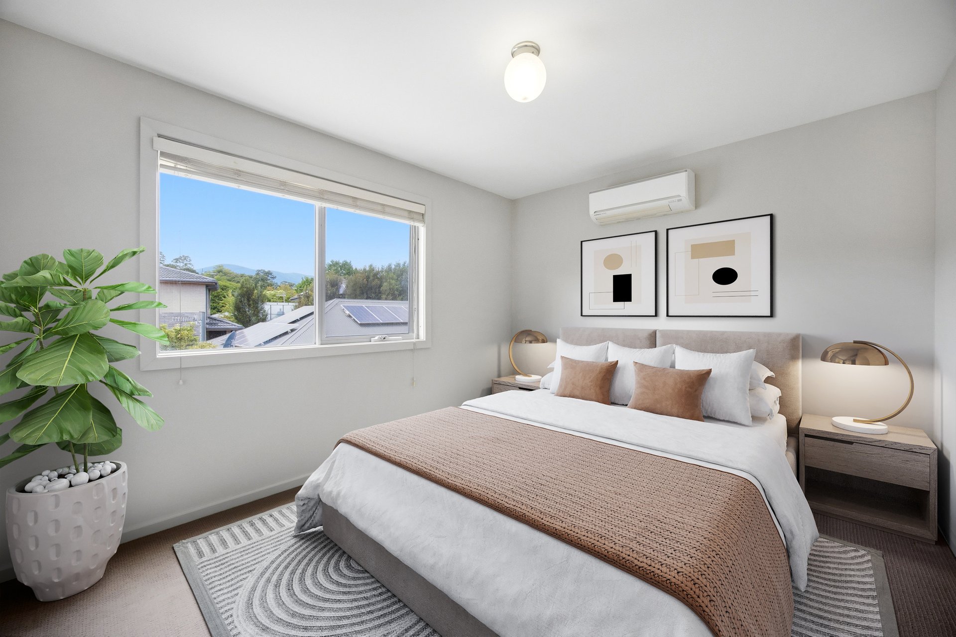 Thoughtfully set across two levels, the entry level features a generous main bedroom, complete with a walk-through robe and private ensuite. Upstairs, a second bedroom and central bathroom are complemented by a light-filled open plan living and dining area. Three reverse-cycle split systems ensure year-round comfort.